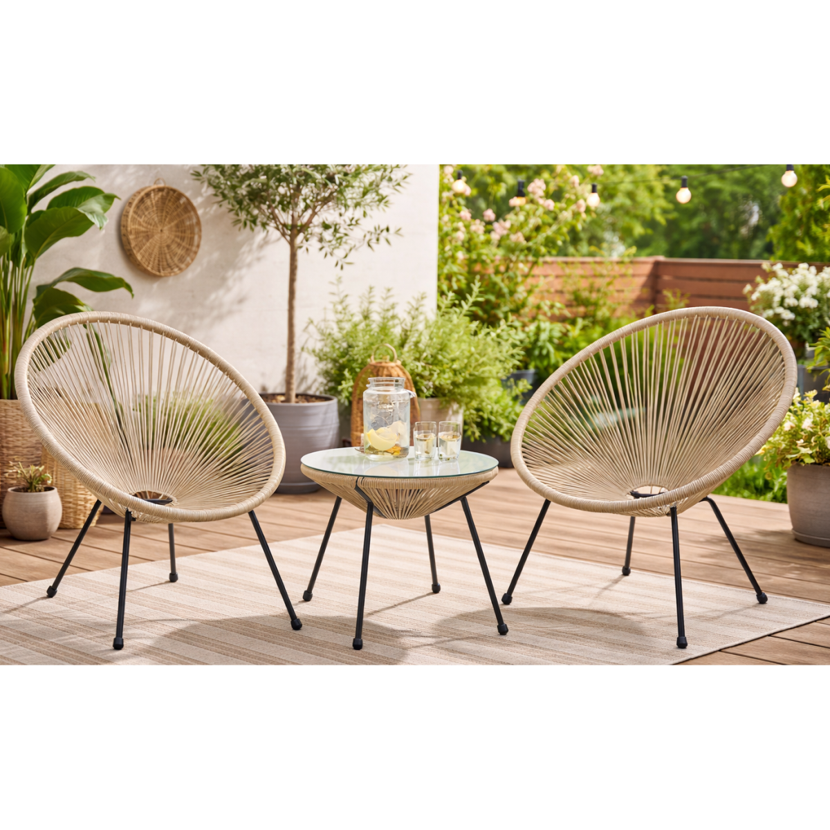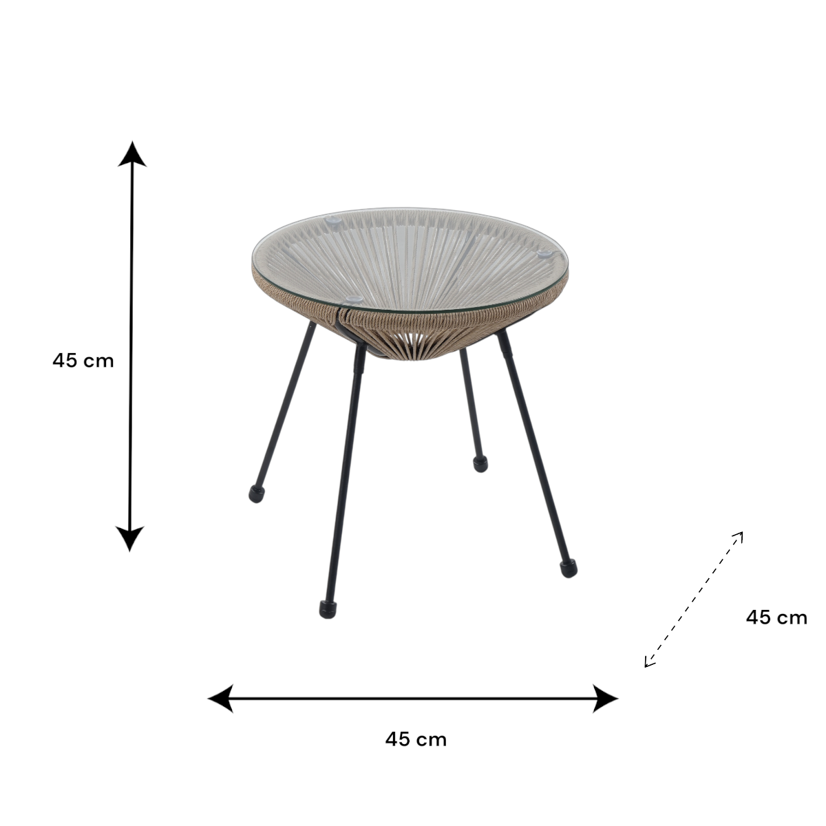 A biztonsági üveg asztallap könnyen tisztítható, és ideális helyet biztosít italok, könyvek vagy kisebb dekorációk elhelyezésére. Kialakításának köszönhetően jól illeszkedik különféle kerti székek és pihenőszékek mellé.