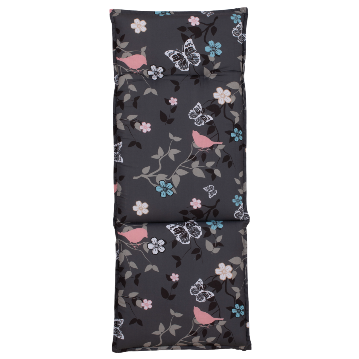 A BEO HL Bregenz M503 magastámlás székpárna kényelmes és dekoratív megoldás magas háttámlájú kerti székekhez. A 6 × 50 × 118 cm-es méret megfelelő alátámasztást biztosít ülés és háttámla területén, míg a pillangómintás huzat harmonikus, modern megjelenést ad a kültéri környezetnek.