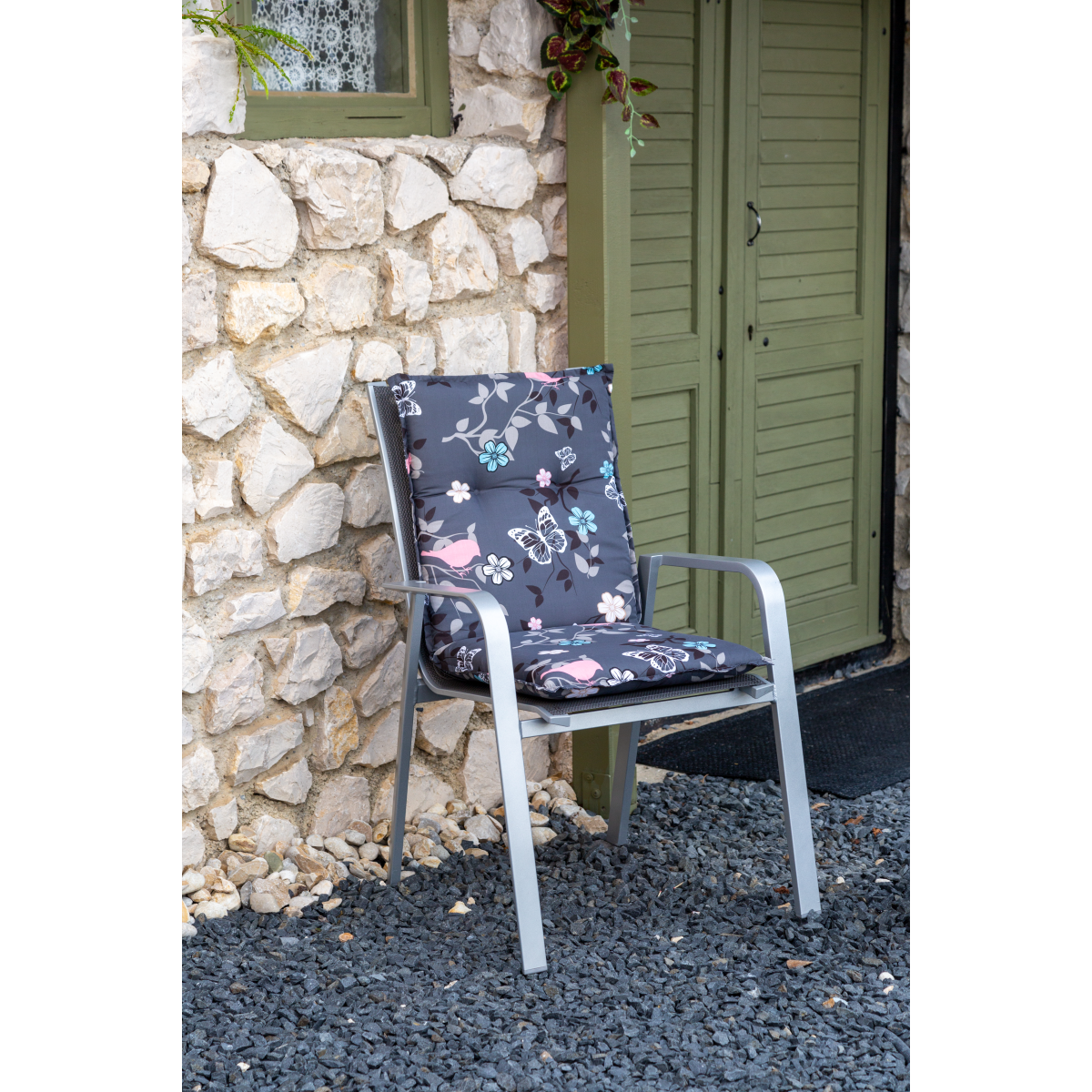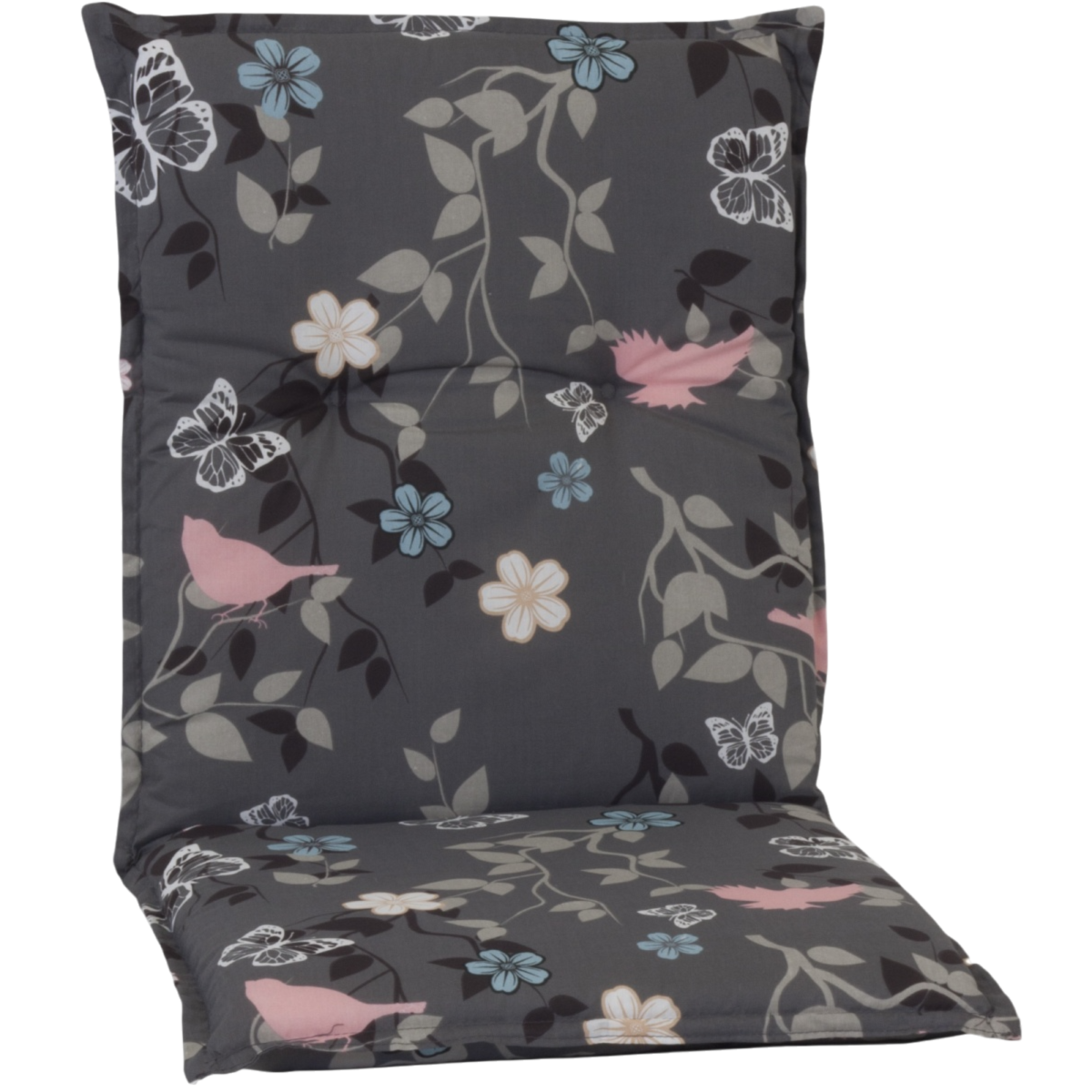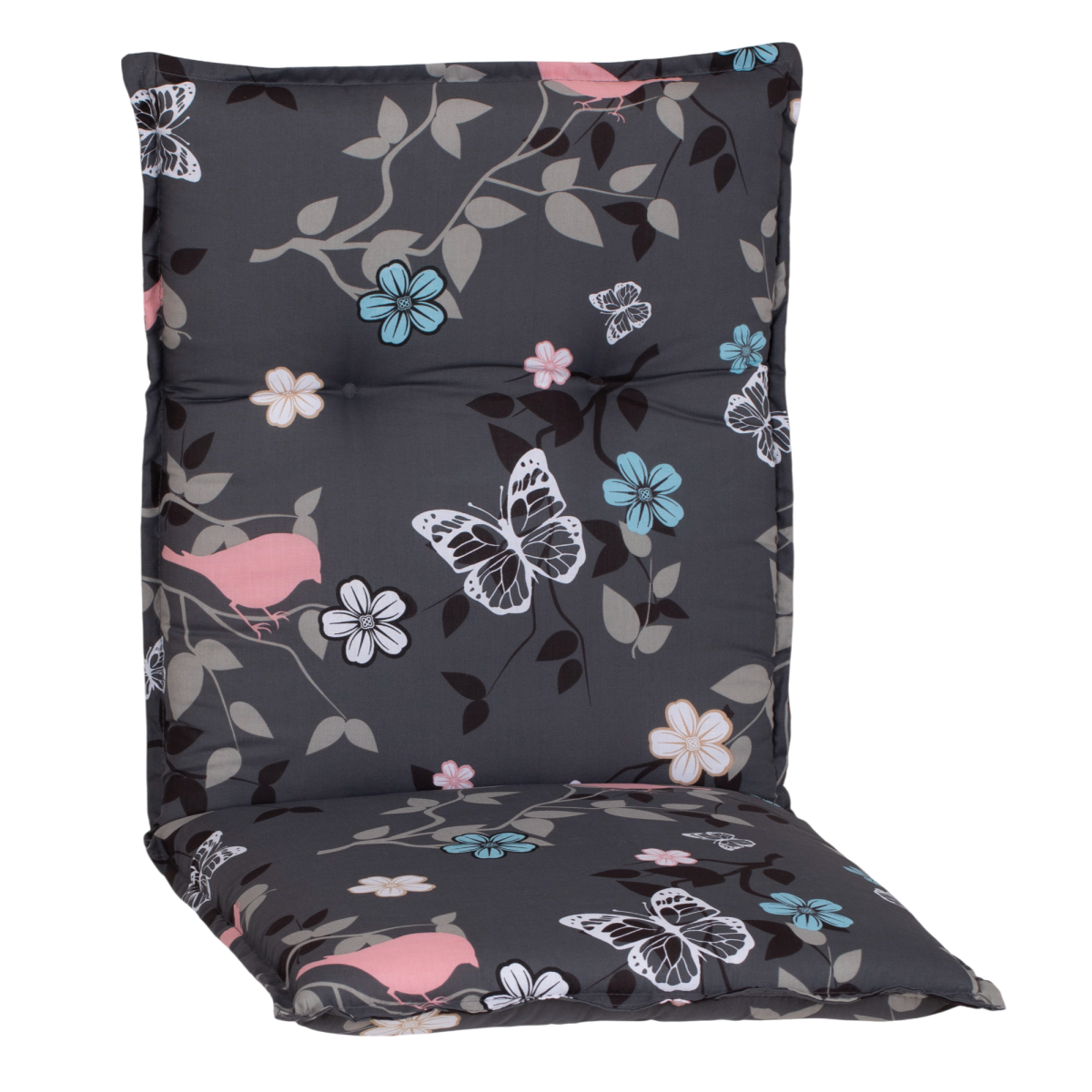 A BEO NL Bregenz M503 alacsonytámlás párna kényelmes és dekoratív megoldás kerti székekhez és alacsony háttámlás bútorokhoz. A 6 × 50 × 101 cm-es méret megfelelő alátámasztást biztosít ülés közben, míg a pillangómintás huzat harmonikus, modern megjelenést ad a kültéri környezetnek.