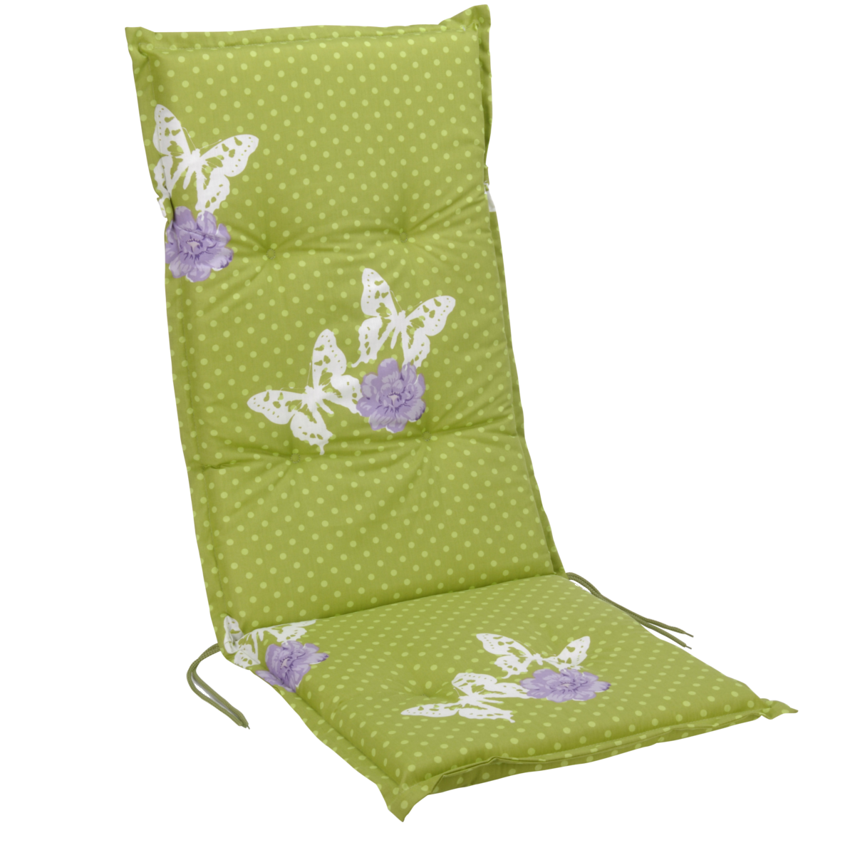 Poliészter kerti párna, zöld alapon lepke mintával. mérete: 120x50 cm.