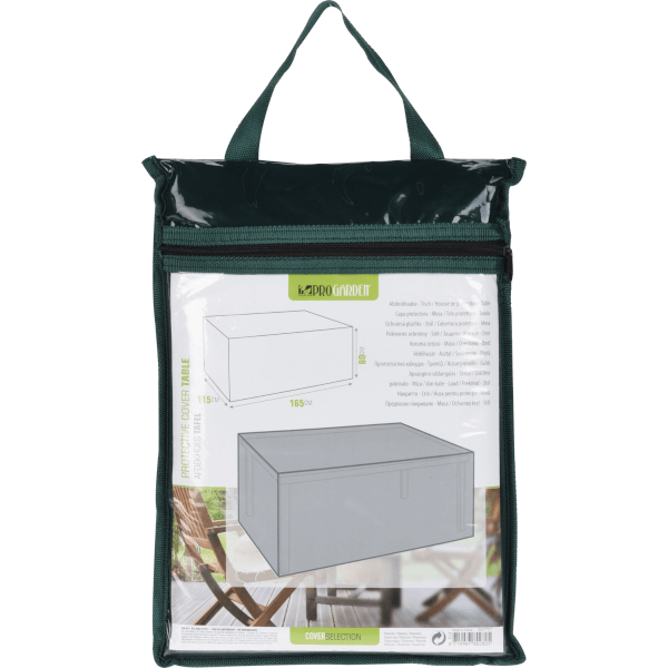 Védőtakaró kerti asztalhoz, sötétzöld színben. Anyaga: polietilén, vinyl-acetát. Zipzáras hordtáskával értékesítjük.