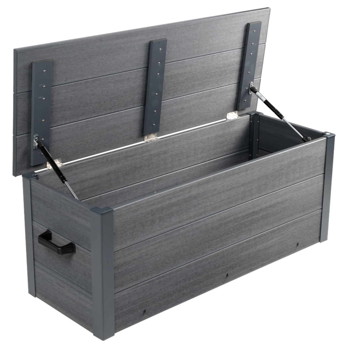 Az antracit színű WPC kerti tároló praktikus megoldás kerti eszközök, párnák vagy kisebb kiegészítők tárolására. Letisztult megjelenése jól illeszkedik a modern kültéri környezetbe, a masszív kialakítás pedig stabil, jól terhelhető használatot biztosít.