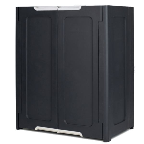 Tároló, mérete: 77x90,5x48 cm. Anyaga műanyag, ezüst szín. Zárható ajtó. Rozsdamentes acél merevítés. 30 kg teherbírás polconként. Falra szerelhető, nagy szekrénnyé alakítható. 1 perc alatt össze és szétszedhető.