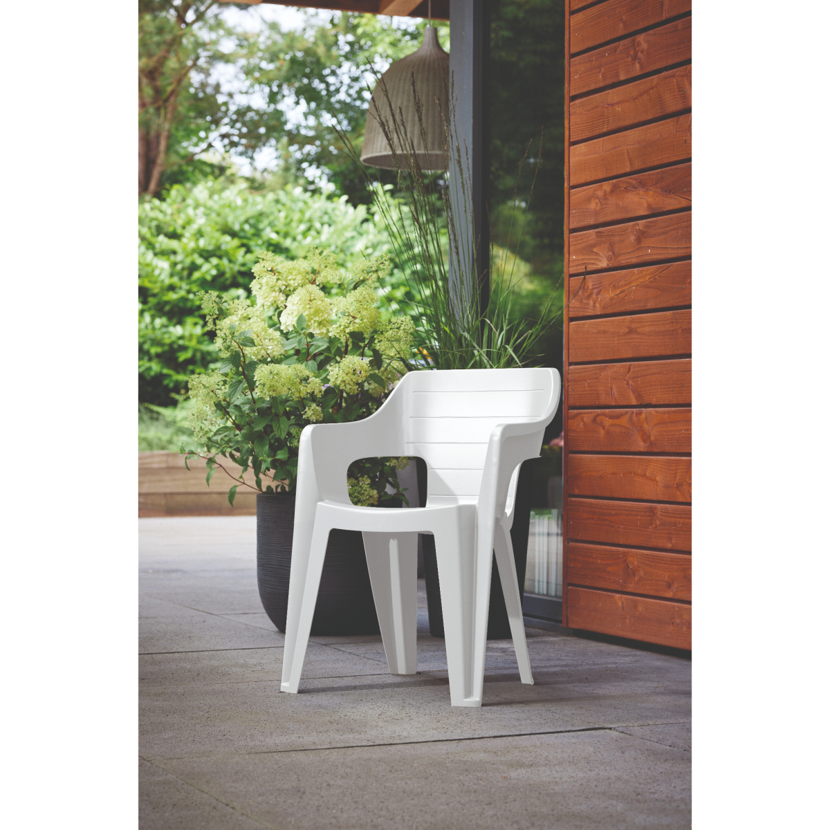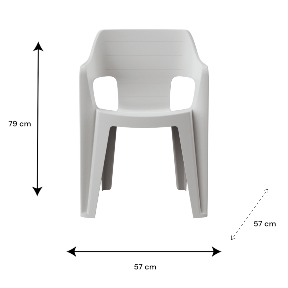 A Keter Bilbao kartámaszos fehér színű műanyag kerti szék modern megjelenésével és átgondolt kialakításával praktikus választás mind kültéri, mind beltéri használatra. Letisztult formája jól illeszkedik teraszra, kertbe, erkélyre, de akár étkezőkbe vagy közösségi terekbe is. A szék egyik legnagyobb előnye a helytakarékos, egymásra rakható kialakítás, valamint az ülőfelületen kialakított vízelvezető nyílás, amely megakadályozza a víz megállását eső vagy tisztítás után.