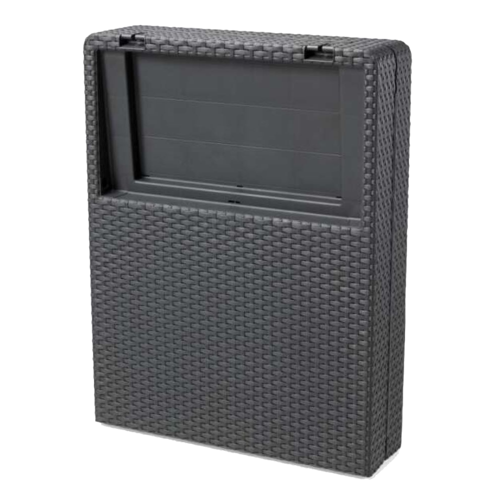 A Keter Jaipur napozóágy praktikus és kényelmes megoldást kínál a kültéri pihenéshez, legyen szó kertről, teraszról vagy medenceparti környezetről. A grafit színű, műrattan hatású felület természetes rattan megjelenést idéz, miközben a műanyag alapanyag előnyeit nyújtja a mindennapi használat során. Átgondolt kialakításának köszönhetően a napozóágy összecsukható, így kis helyen is könnyen tárolható, akár poggyász méretben. A 4 pozícióban állítható háttámla lehetővé teszi, hogy mindig a számodra legkényelmesebb testhelyzetben pihenj. A stabil szerkezet megfelelő alátámasztást biztosít, ugyanakkor használat közben a termék nem mozgatható terhelés alatt. Időjárás- és UV-álló kialakítása alkalmassá teszi hosszabb távú kültéri használatra is.