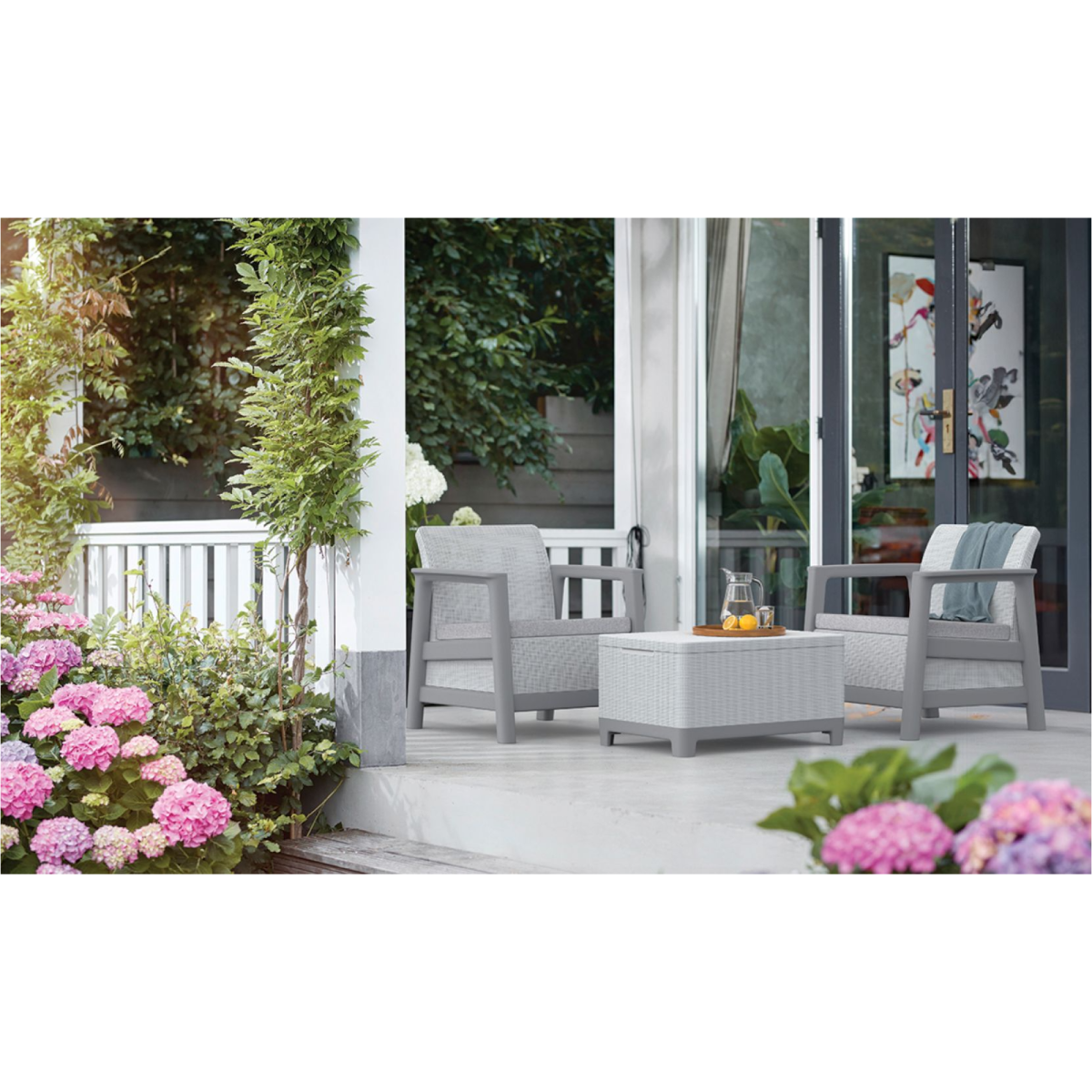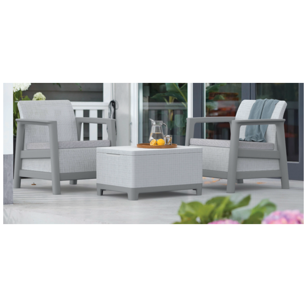 Keter Scandi Linea tárolós asztal világosszürke balkon szett