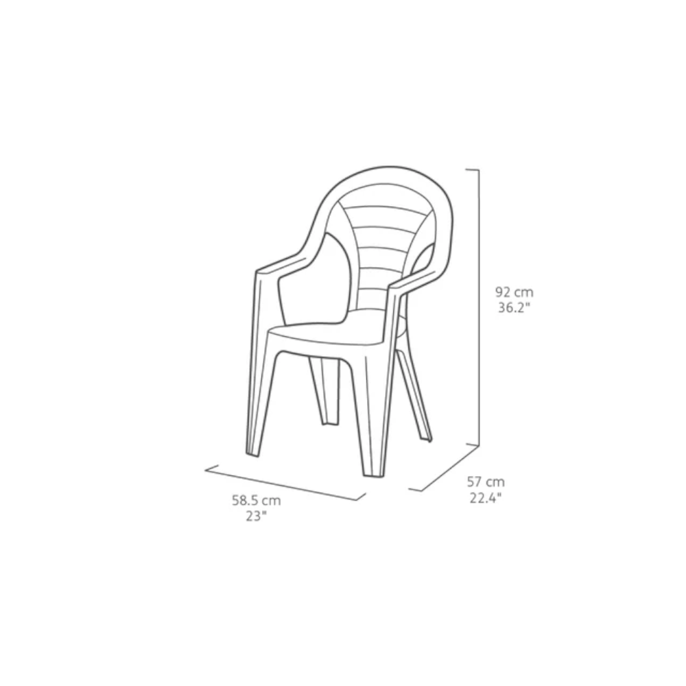 A Keter Bonaire magastámlás zöld műanyag szék kényelmes és univerzális ülőalkalmatosság kültéri használatra. Kartámasszal és magas háttámlával kialakított formája kellemes üléspozíciót biztosít, zöld színe pedig harmonikusan illeszkedik a kerti környezetbe.