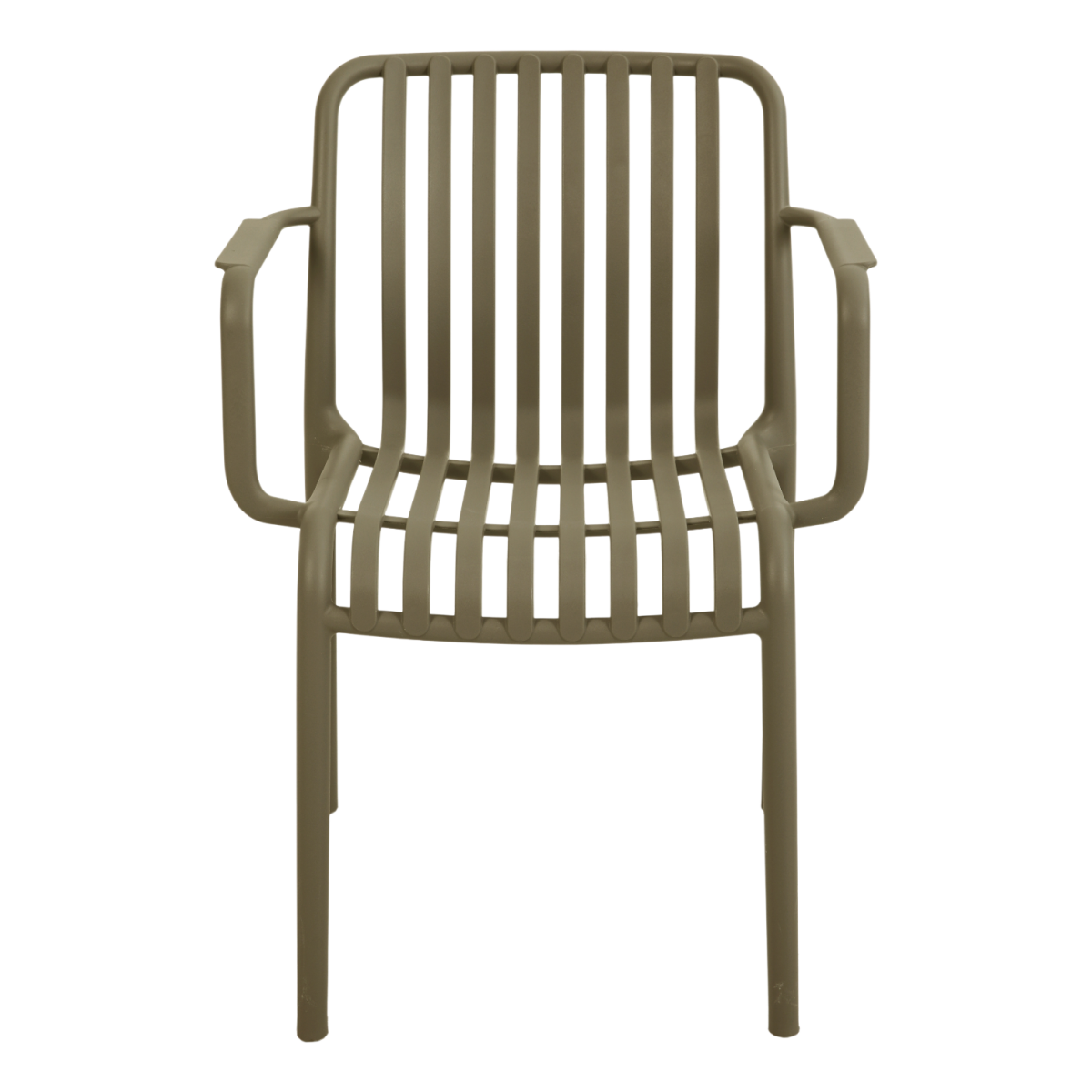 A kartámaszos kialakítás kényelmes üléspozíciót biztosít pihenéshez és beszélgetésekhez. Az ülésen és a háttámlán kialakított polipropilén lécek könnyed, szellőző hatást keltenek, miközben egységes formavilágot adnak a széknek. Műanyag anyaga miatt a szék egyszerűen mozgatható és a mindennapi használat során jól kezelhető.