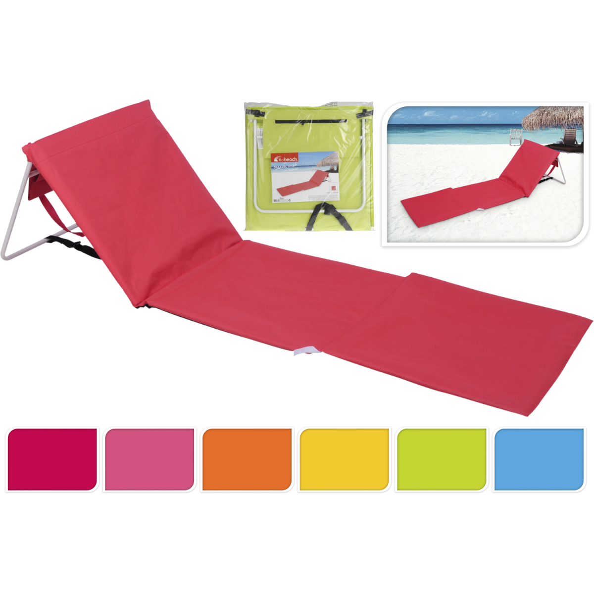 Strand napozó feltámasztható fejrésszel, többféle színben. Mérete: 160x54cm.