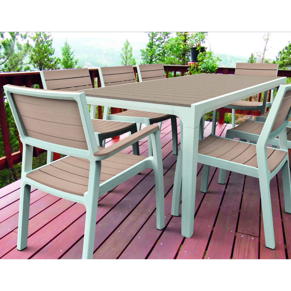 A modern és nagyon kényelmes Harmony szék tökéletes kiegészítője a házkörüli kerteknek vagy teraszoknak, de akár a beltereknek is. A terméket kényelmes háttámla és az ülés, illetve a fa felületet imitáló borítás jellemzi. Összeszerelése könnyű, tisztítása egyszerű és ellenáll az időjárás viszontagságainak