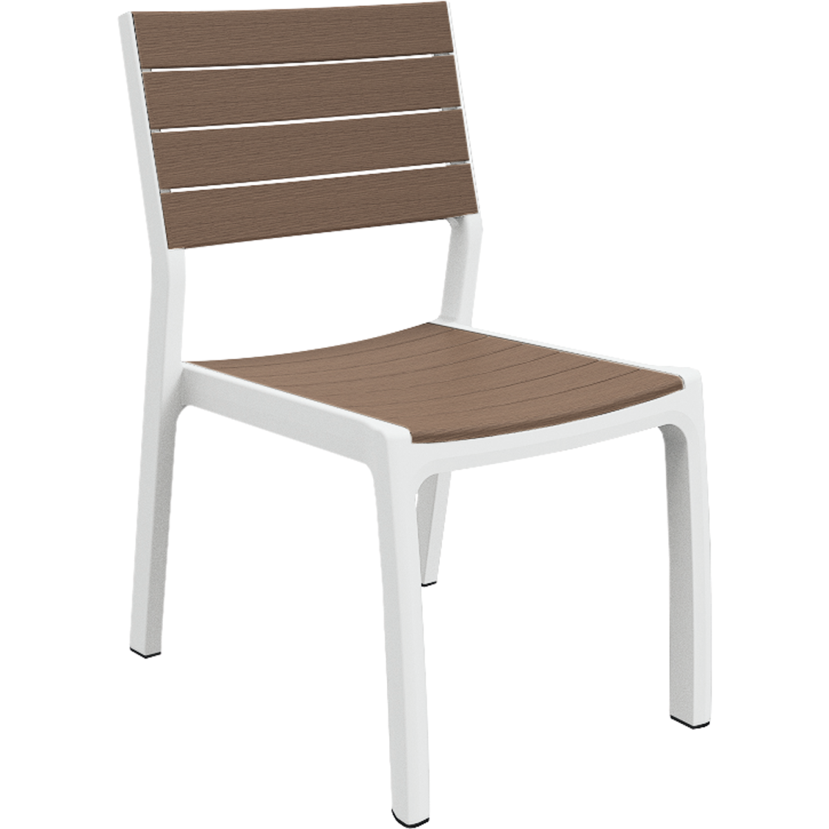 A modern és nagyon kényelmes Harmony szék tökéletes kiegészítője a házkörüli kerteknek vagy teraszoknak, de akár a beltereknek is. A terméket kényelmes háttámla és az ülés, illetve a fa felületet imitáló borítás jellemzi. Összeszerelése könnyű, tisztítása egyszerű és ellenáll az időjárás viszontagságainak