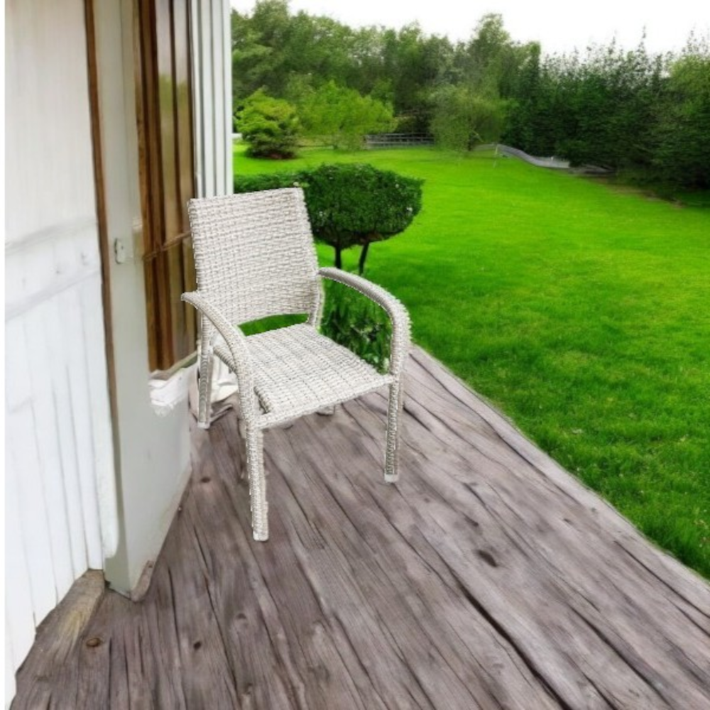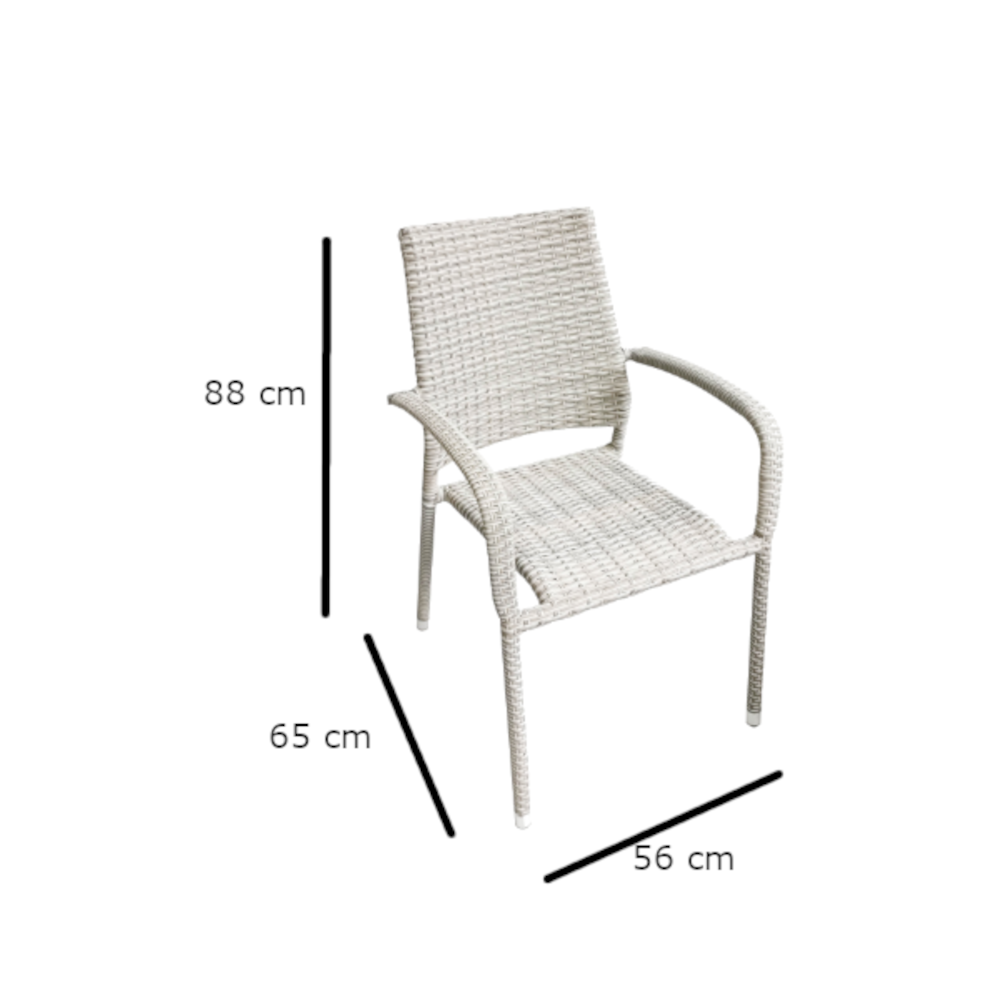 A rattan hatású kerti étkezőszék 56×65×88 cm praktikus és esztétikus ülőalkalmatosság kültéri étkezésekhez. Porfestett acélvázzal és fonatolt díszítéssel készült, így stabil szerkezetet és dekoratív megjelenést kínál. Könnyen tisztítható kialakítása miatt jól használható a mindennapokban.