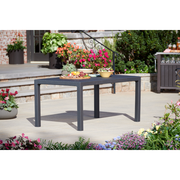 A Melody egy elegáns és praktikus kerti asztal, amely tökéletes nagyobb házhoz tartozó terek berendezésére, mint pl. a terasz vagy a kert. Egyedi kivitelezése természetes rattan fonásra utal, ami kétségtelenül emeli a termék esztétikai értékét, az asztal széles, négyszögletes asztallapjánál kényelmesen elfér 6 ember. Az asztal ellenálló a sérülésekkel és az időjárás viszontagságaival szemben. Összeszerelése könnyű, tisztítása egyszerű.