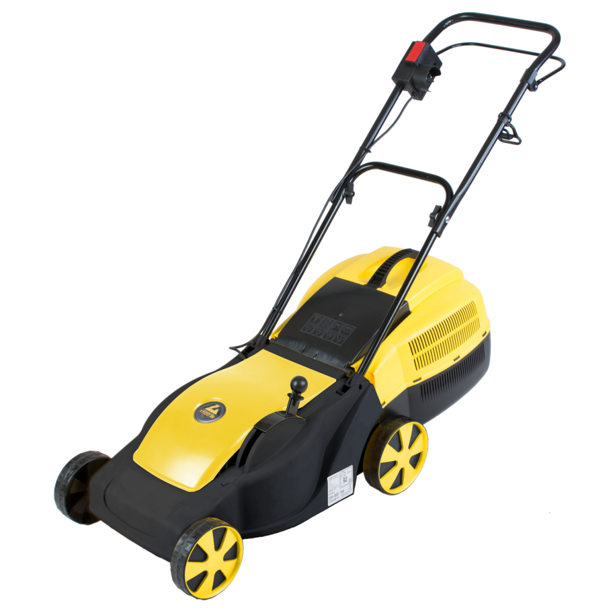 Fűgyűjtős elektromos fűnyíró 38,5 cm-es vágószélességgel. Két funkciója közül választhat: fűgyűjtés vagy hátsó kidobás. Könnyű anyagokból készült, irányítása egyszerű, szűk helyeken, fák vagy bokrok tövénél is jól manőverezhető. Ideális választás hobbi szintű felhasználásra, kis területek nyírásához. Kerékméret (első/hátsó): 160/180 mm.