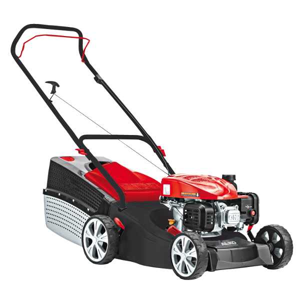 Ez az AL-KO benzinmotoros fűnyíró közepes méretű kertek gyepfelületének ápolására alkalmas. Kétféleképpen lehetséges a fűnyírűs: hagyományos módon, ekkor a fűnyíró hátrafelé egy csíkba rendezi a levágott füvet illetve ha a fűnyíró a fűgyűjtőbe gyűjti a levágott füvet. AL-KO acéllemezház a tartós működtetésért. A korróziógátlás érdekében a fűnyíró háza porszórt, ami tartósabb bevonatot képez a festésnél. Mivel fűnyírás közben az összevágott fűből csersav rakódik a fűnyíró alkatrészeire, a használat utáni alapos tisztítással növelhető a fűnyíróház élettartama. Dupla golyóscsapágyazással ellátott gyepkímélő XL kerekek. Ha a fűnyíró kerekeit a külső és belső oldalukon is csapágyazzák, azzal megnő a fűnyírókerék terhelhetősége, valamint sokkal stabilabbá válik a fűnyíró menet közbeni iránytartása. A széles fűnyírókerekek nem tapossák le a füvet, nem marad csík utánuk, a bordázott gumifelület pedig jobb tapadást eredményez. Aszimmetrikus AL-KO fűnyíróházzal, ami azt jelenti, hogy a fűnyíró háza nem szimmetrikusan helyezkedik el a négy kerék között, hanem egy kissé eltolva az egyik oldal felé. Ennek eredményeként a fűnyíróház oldalra "kilóg" az oldalsó kerekek síkjából. Ennek következtében a fűnyíró teljesen levágja a füvet a kerítések mellett, vagy a fák, oszlopok körül is. Ergonómikus, kengyeles kapcsoló, ami mindkét irányból elérhető, így a fűnyíró jobbról és balról egyaránt tolható.