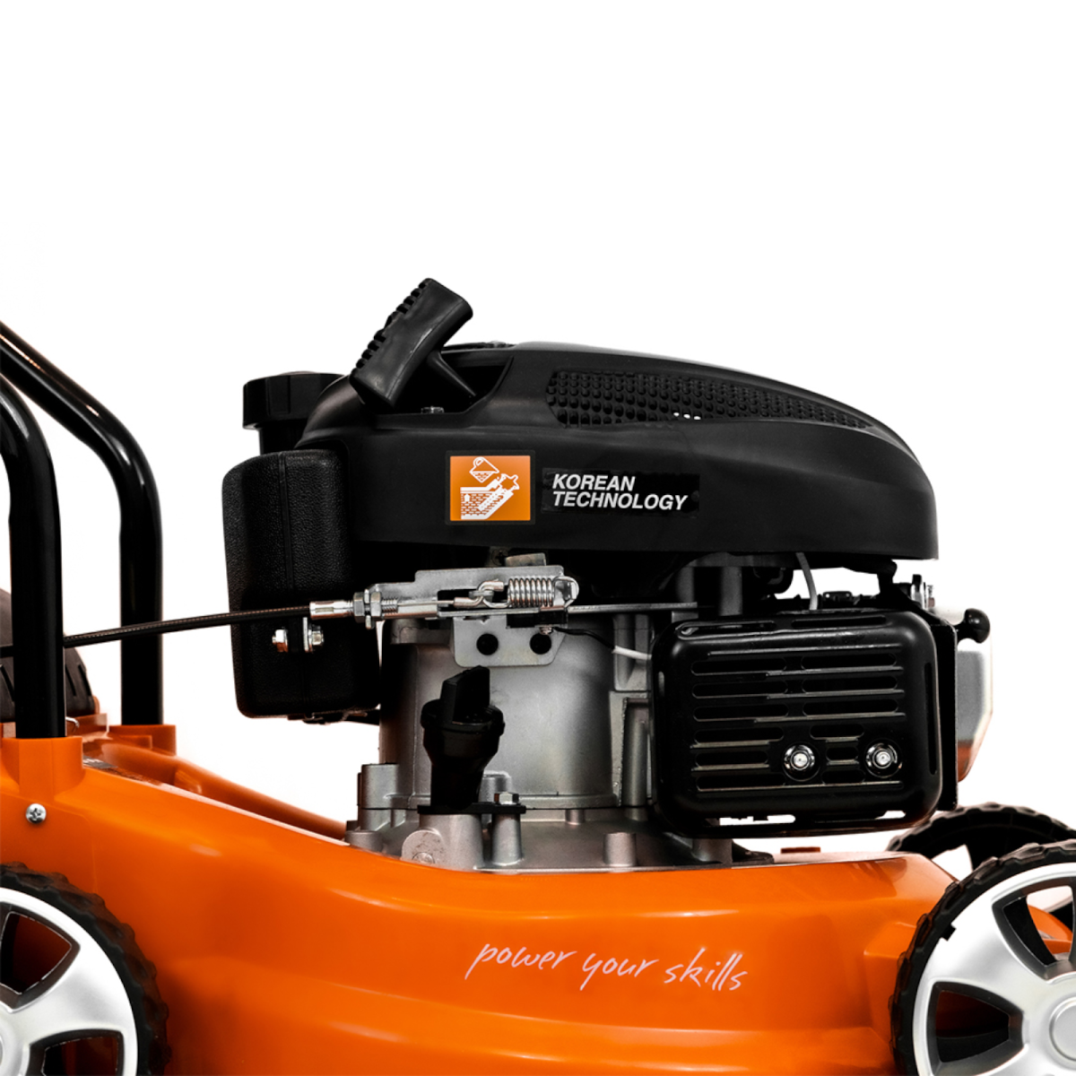 A Daewoo DLM4100 benzines fűnyíró megbízható és hatékony társ a közepes és nagyobb méretű kertek karbantartásához. Erőteljes, 79 cm³-es motorja 1,3 kW teljesítményt biztosít, amely elegendő a sűrűbb vagy magasabb fű nyírásához is.