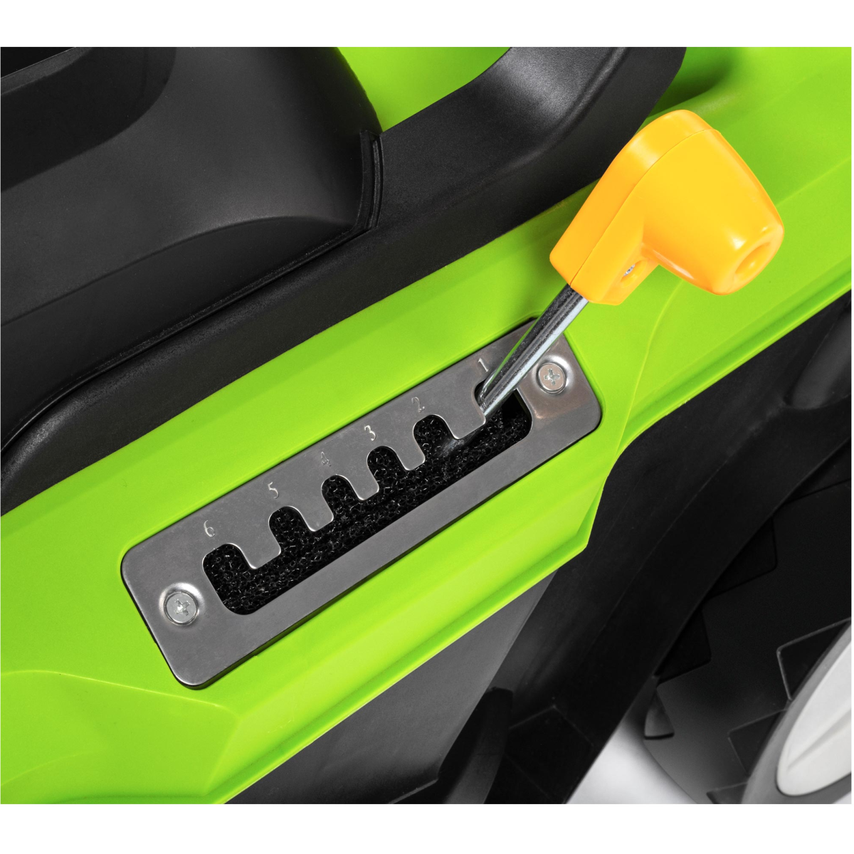 Elektromos fűnyíró Motor teljesítmény: 2000 W. Üresjárati fordulatszám: 3300 fordulat / min. Vágási szélesség: 430 mm. Vágási magasság: 20 / 30 / 40 / 50 / 60 / 70 mm. Állítható vágási magasság: 6 pozíció. Alváz anyaga: műanyag. Fűgyűjtő kosár anyaga: műanyag / textil. Fűgyűjtő kosár kapacitás: 50,0 liter. Fűgyűjtő kosár kapacitás jelző: igen. Összecsukható fogantyú: igen. Állítható fogantyú magasság: igen. Javasolt terület: 600 m2. Feszültség / Frekvencia: 230-240 V, 50 Hz. Zajszint: 96 dB (A).