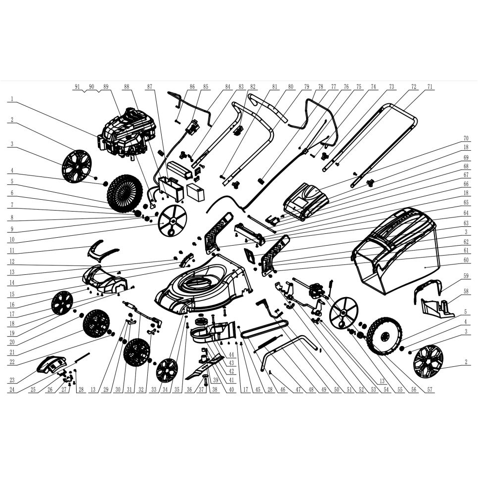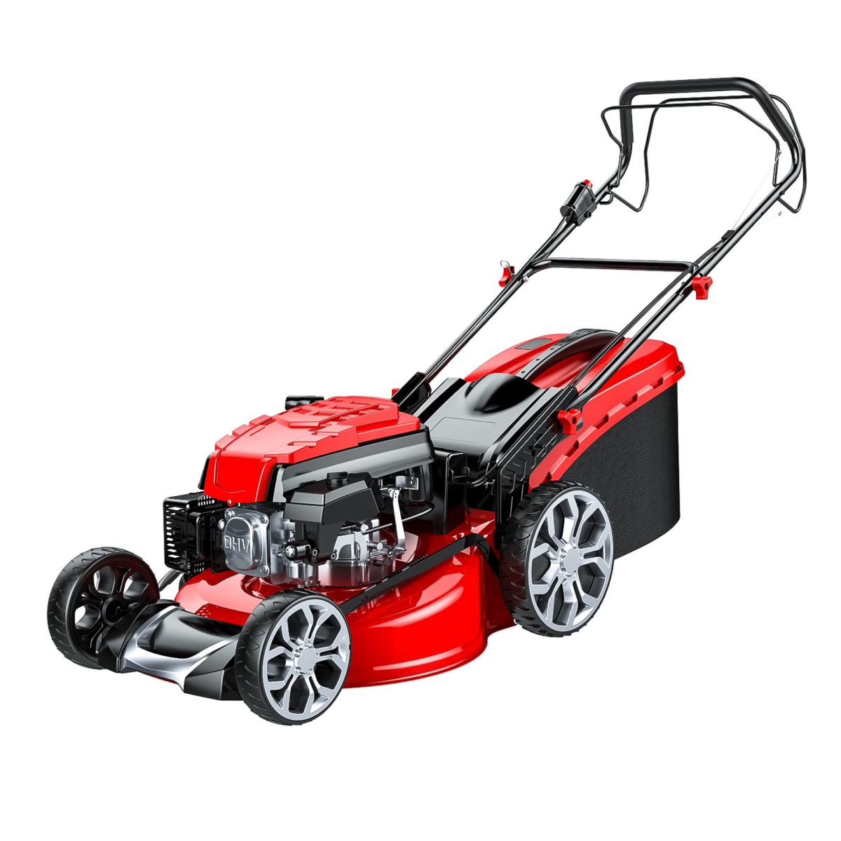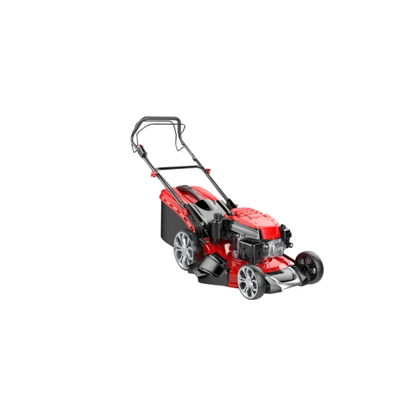 51 cm vágásszélességű fémházas önjáró fűnyíró. 173 ccm/3,7LE négyütemű motorral 4in1 funkció fűgyűjtés, oldaló kidobás, mulcsozás, hátsó kidobás központi magasságállítás 30-80mm /6pozició kerekek golyós csapággyal szereltek nagyméretű széles kerék kíméletes fűnyíráshoz.