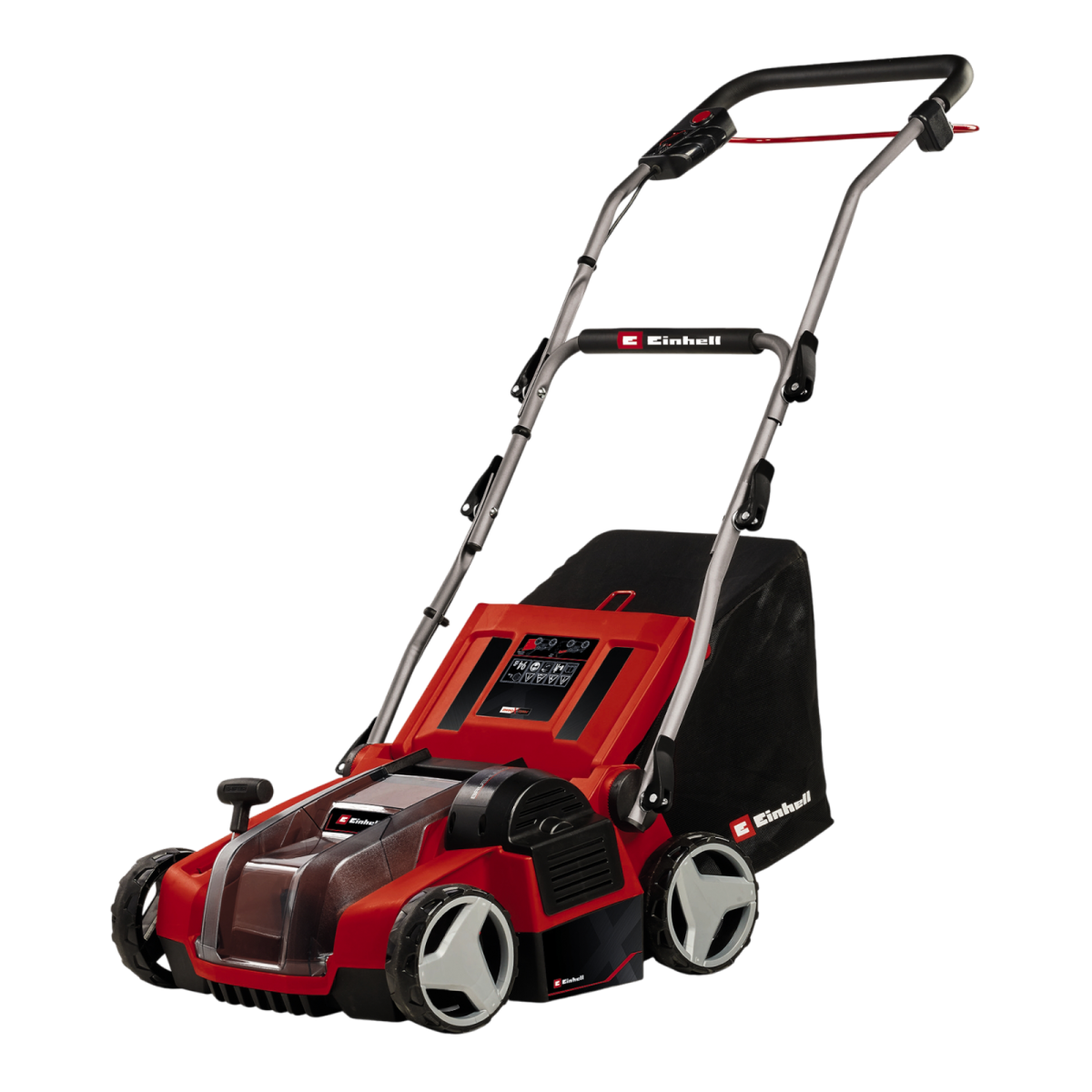 Ezt a készüléket Einhell PurePOWER szénkefe nélküli motorral szerelték fel. A szénkefe nélküli motorok nagyobb erőátvitelt és hosszabb üzemidőt garantálnak, mint a szénkefével gyártott társaik. A készülék három funkciót egyesít magában, így használhatod talajlazításra, gyepszellőztetésre és fűgyűjtésre is. A 16 robusztus, rozsdamentes acél késsel gyártott golyóscsapágyas hengerrel könnyedén megmunkálhatod a gyepet. A szintén golyóscsapágyas levegőztetőhengert 24 karommal látták el. A 3 fokozatú központi magasságállítás és a szállítási pozíció kényelmes munkavégzést biztosítanak. Az összecsukható és állítható magasságú nyelet gyorskioldó karral és parkolópozícióval szerelték fel. Integrált hordozó fogantyúval, nagy futófelületű, gyepet óvó kerekekkel, illetve 28 liter űrtartalmú gyűjtőzsákkal szerelt. A hengereket szerszámok nélkül is könnyedén kicserélheted. Az ütésálló műanyagból készült készülékház minimális karbantartást igényel.
