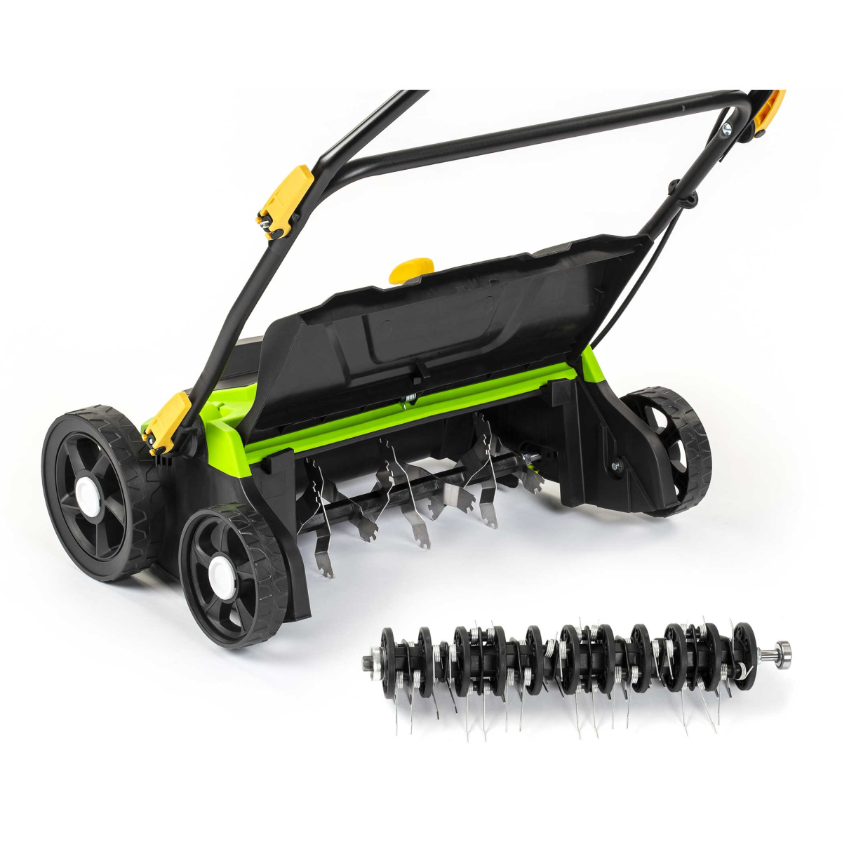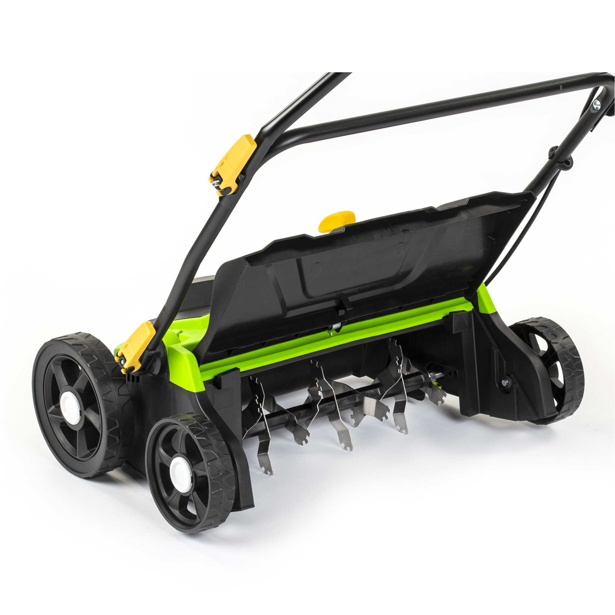 A 18 késes forgatóhengert évente kétszer ajánljuk, míg a 40 rugós levegőztető hengert körülbelül minden harmadik kaszálás után értékeljük. Maga a csere egyszerű, amit a gép kis tömege is segít. A 40 l-es gyűjtőkosárnak köszönhetően a pázsit munka után tiszta marad, és nem kell bajlódnia az eltávolított maradványok eltakarításával. Az erős 1300 W-os motor a legjobban 600 m²-es területeken használható, így jobban megfelel kisebb vagy töredezettebb kertekhez.