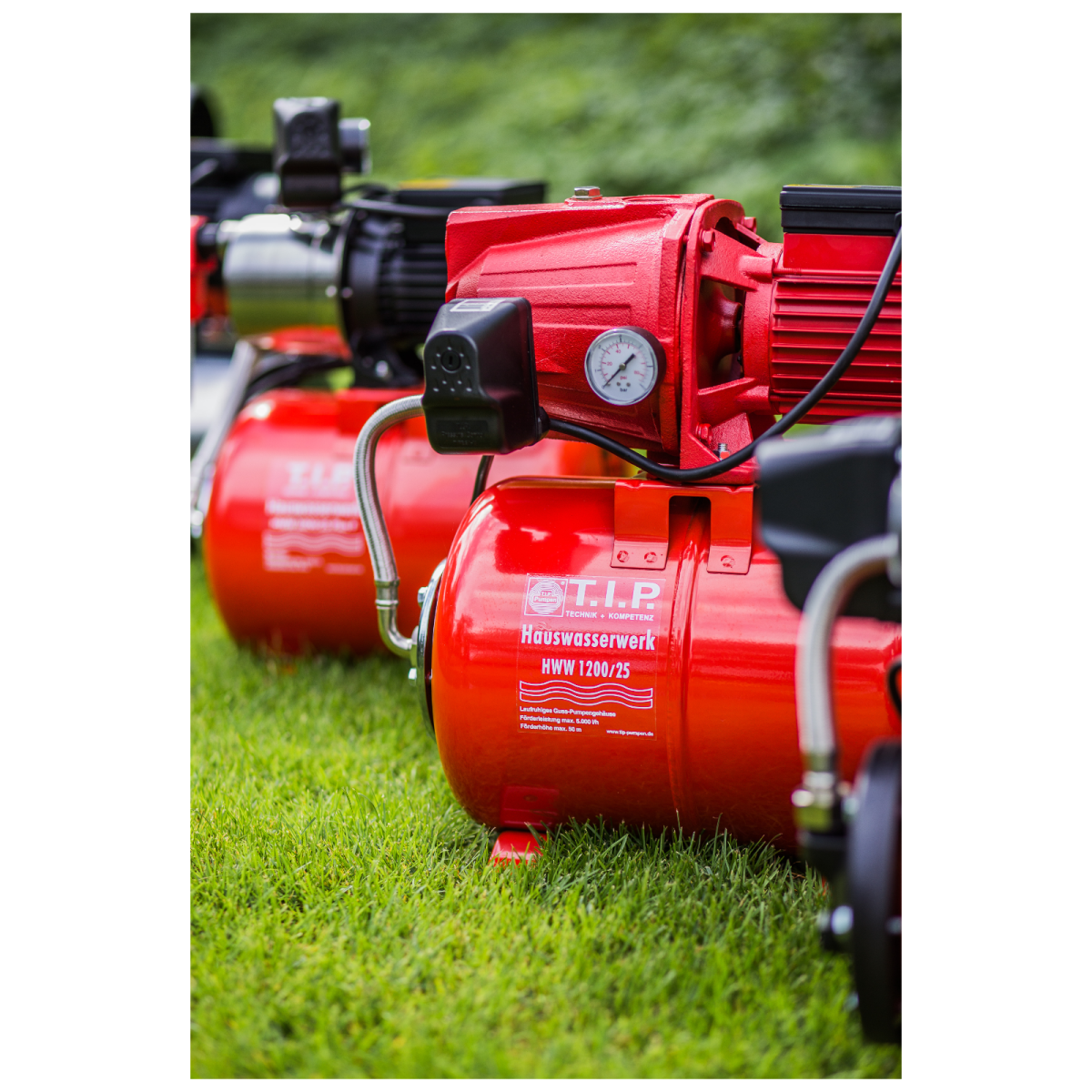A HWW 1200/25 egy robusztus felépítésű házi vízmű nagy teljesítményének köszönhetően sokrétűen alkalmazható. A nehéz, öntvényből készült szivattyúház csendes üzemeltetést biztosít. Használható kútból és ciszternából származó vízzel történő használati vízellátáshoz, kerti öntözéshez és automatikus öntözéshez. Karbantartást nem igénylő kondenzátormotor túlmelegedés elleni védelemmel. Nyomáskapcsoló és integrált nyomásmérő segíti a pontos nyomásérték beállítását. Élelmiszer-biztonságos membránnal EPDM-ből. Hidraulikus egység: Noryl.