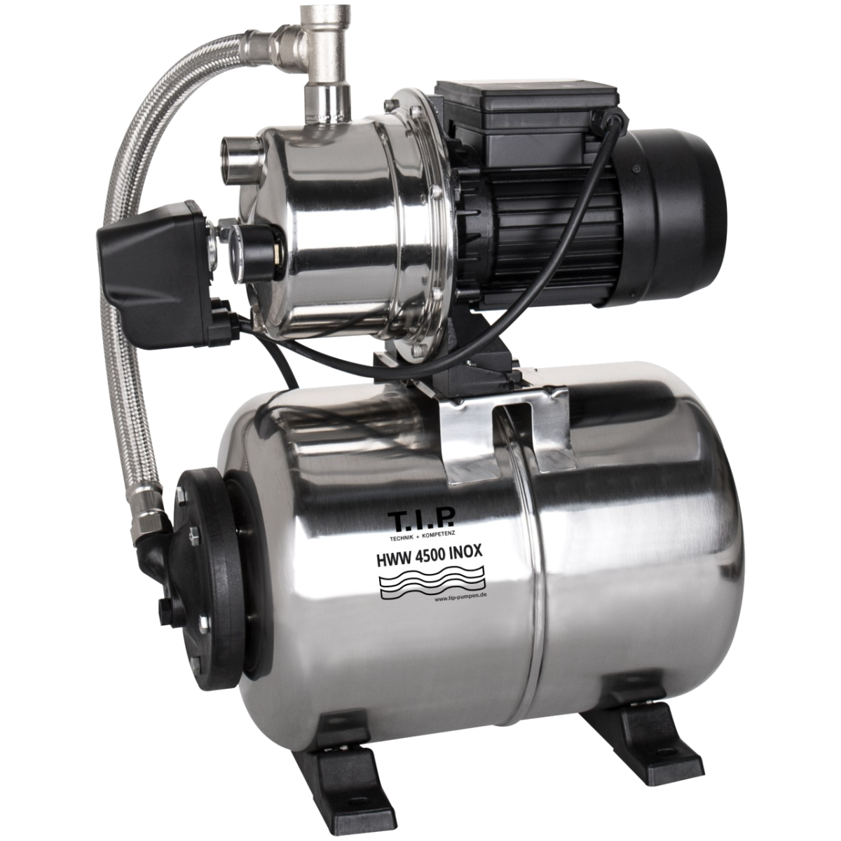 A nagy teljesítményű HWW 4500 INOX ideális készülék házon belüli telepítésre, de teljes nemesacél kivitelének köszönhetően arra is alkalmas, hogy aknákban kerüljön beépítésre.1200 W motor, 50 m emelési magasság / 5 bar nyomás, 4.350 l/h vízhozam, 9 m önfelszívó magasság, rozsdamentes 24 literes tartály, 1,5 m hosszú H07RN-F csatlakozó kábel, 5 db esőztetővel.