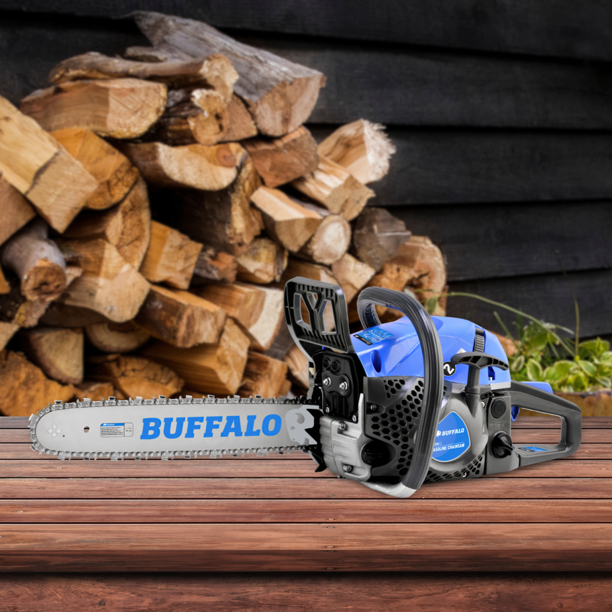 A Buffalo B4516CS benzines láncfűrész erős és praktikus választás, ha megbízható eszközt keresel faanyag vágásához és kerti munkákhoz.