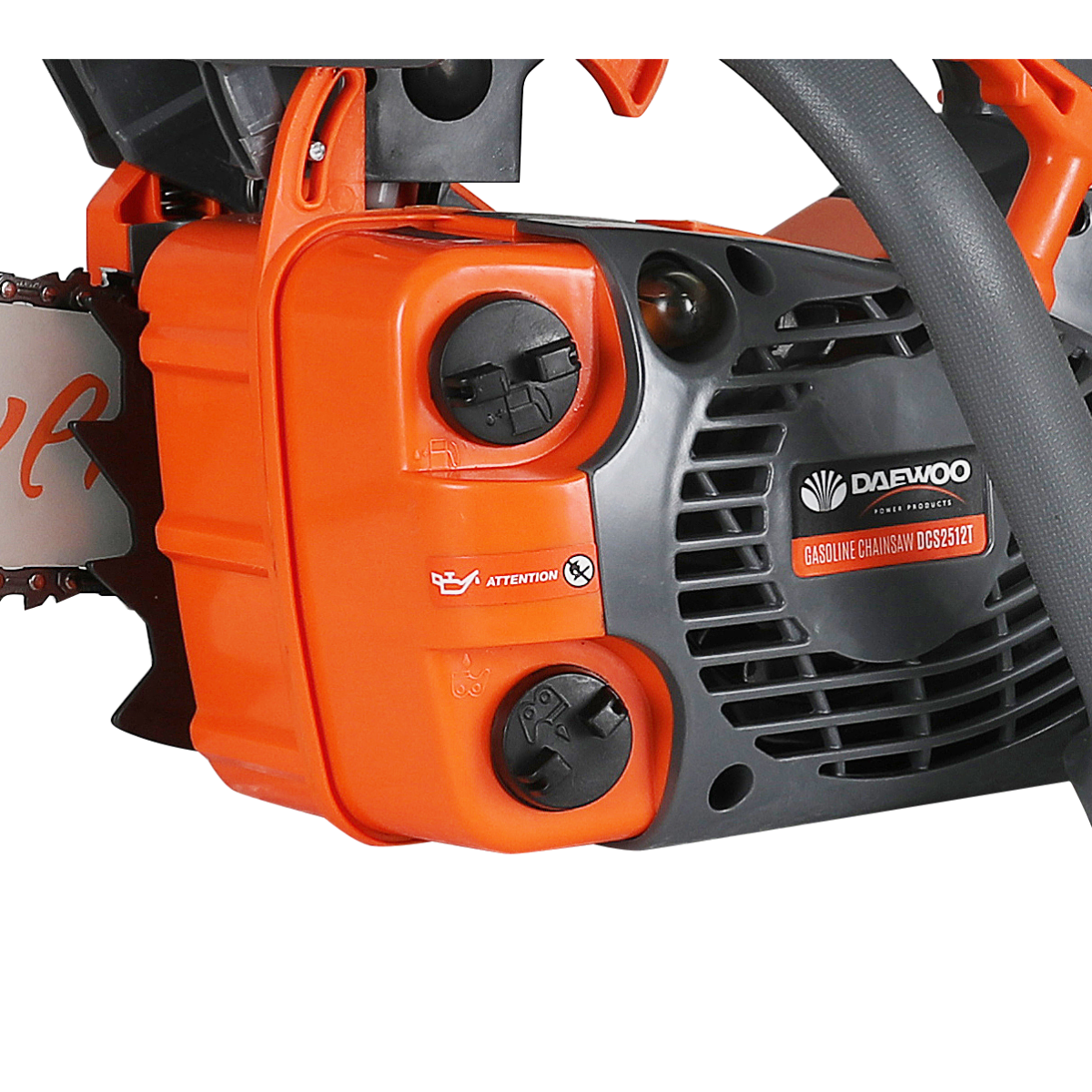 A Daewoo DCS2512 benzines láncfűrész 25,4 cm³-es motorral és 900 W (1,2 LE) teljesítménnyel ideális választás kisebb és közepes méretű fűrészelési feladatokhoz. A 30 cm-es láncvezető precíz és gyors vágást biztosít, miközben a teljes rezgéscsillapító rendszer csökkenti a kezelő fáradtságát és növeli a kényelmet hosszabb munkavégzés során. Az állítható és automatikus láncolajkenés lehetővé teszi a lánc olajozásának szabályozását, alkalmazástól és időjárási körülményektől függően. A 350 ml-es üzemanyagtartály és a 300 ml-es olajtartály elegendő üzemanyagot biztosít a hosszabb munkamenetekhez. Az üresjárati fordulatszám 3000 ±300 rpm, amely ideális vágási teljesítményt biztosít. A Daewoo DCS2512 benzines láncfűrész kiváló választás azoknak, akik egy megbízható és kényelmes láncfűrészt keresnek otthoni felhasználásra.