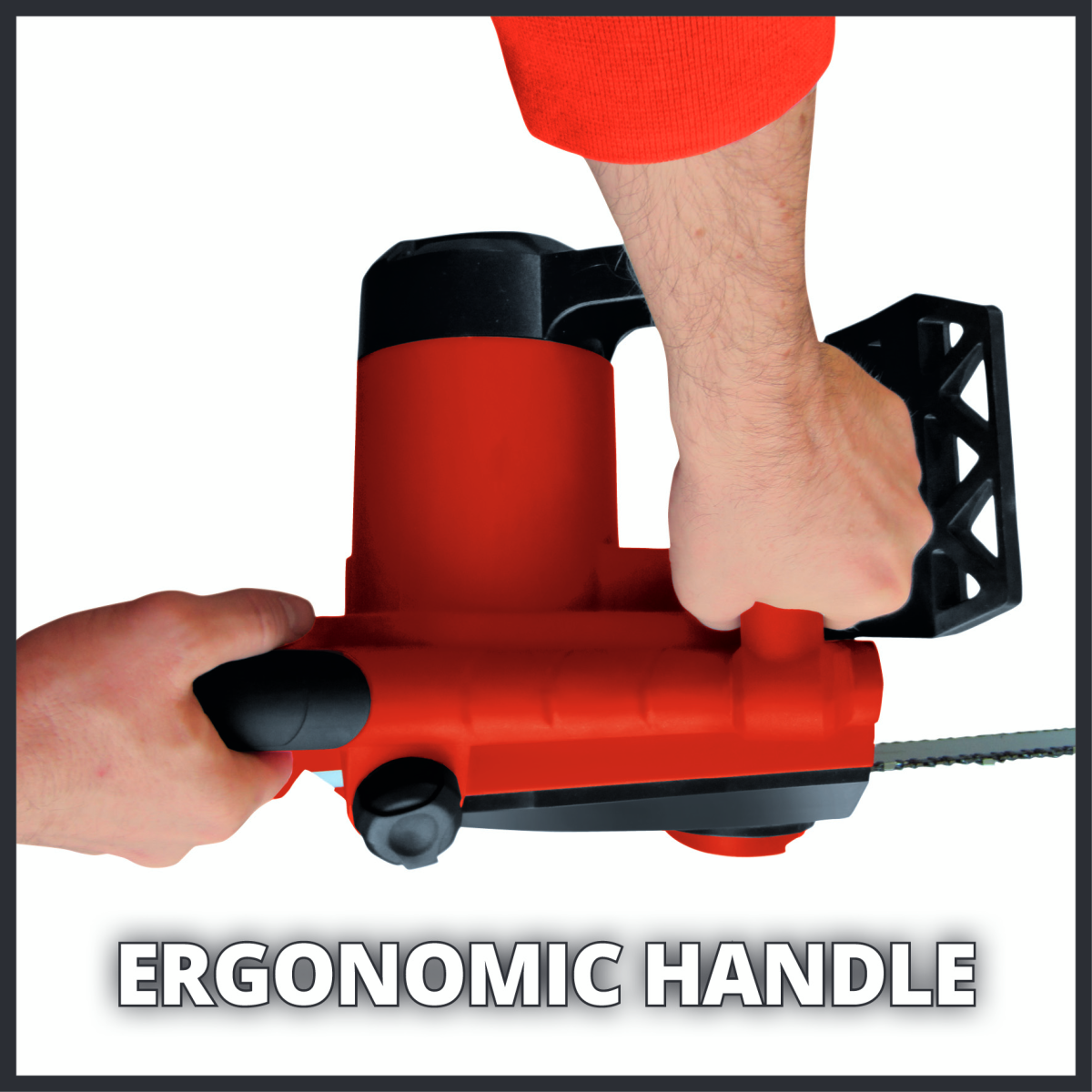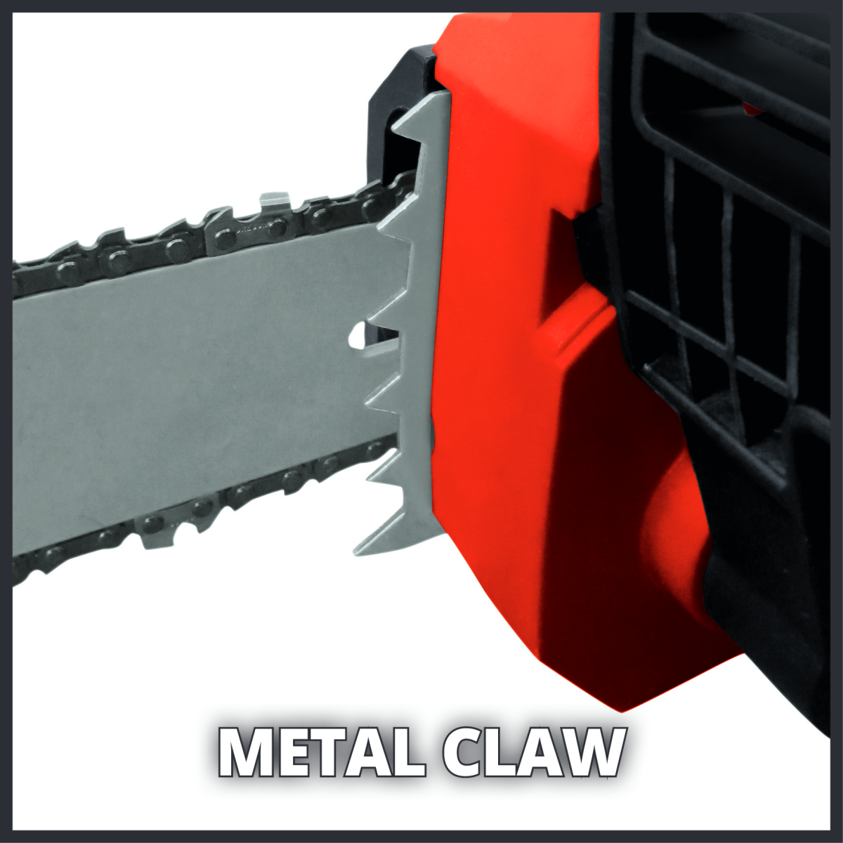 A lánc szerszám nélkül feszíthető és cserélhető, ami kényelmes és gyors karbantartást tesz lehetővé. A fém hajtómű a hosszú élettartamról gondoskodik, míg a visszacsapódás-védelem és a láncfék fokozott biztonságot nyújt használat közben.