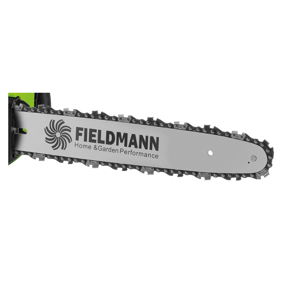 A Fieldmann FZP 2105-E egy könnyű és könnyen kezelhető elektromos láncfűrész. A meghajtásáról a 1800 W teljesítményű villanymotor gondoskodik, így nem jelent problémát a vastagabb farönkök szétvágása. Ideális választás kert karbantartásara, vagy a téli tüzelő előkészítésére. A csomag tartalma egy 355 mm hosszúságú Fieldmann vezetőlemez és egy 3/8’, 1,3 mm méretű lánc. Beépítésre került egy biztonsági kapcsoló és egy biztonsági fék is, ami a visszarúgástól védi a felhasználót. A láncot használat közben az FZP 2105-E beépített olajpumpa az olajtartályból automatikusan keni.