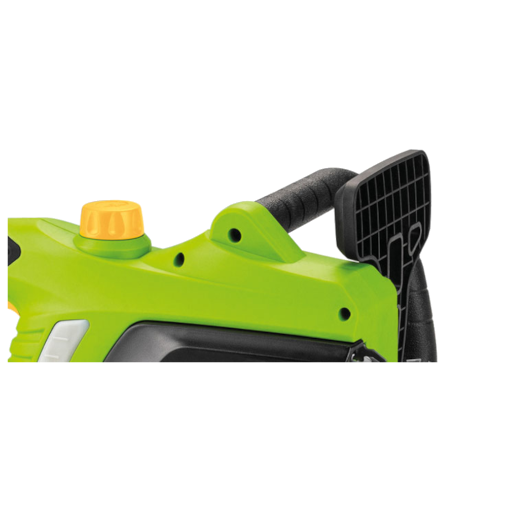 1800 W-os, 355 mm láncvezető hosszal bíró elektromos láncfűrész, 220 ml kapacitású olajtartállyal, automata olajpumpával, biztonsági láncfékkel, lánctartóval.