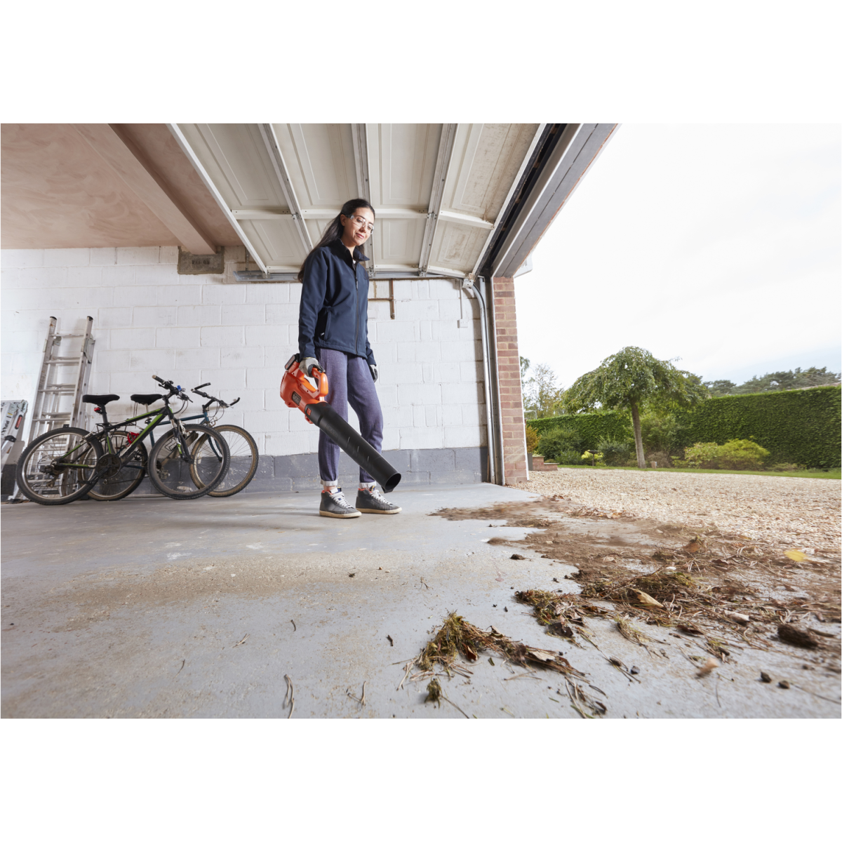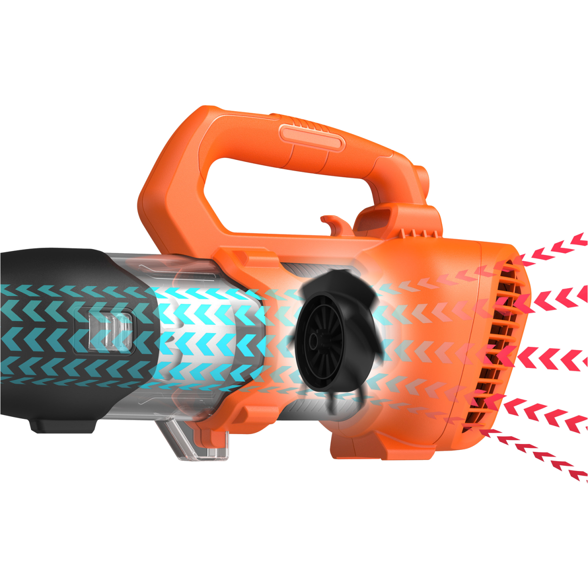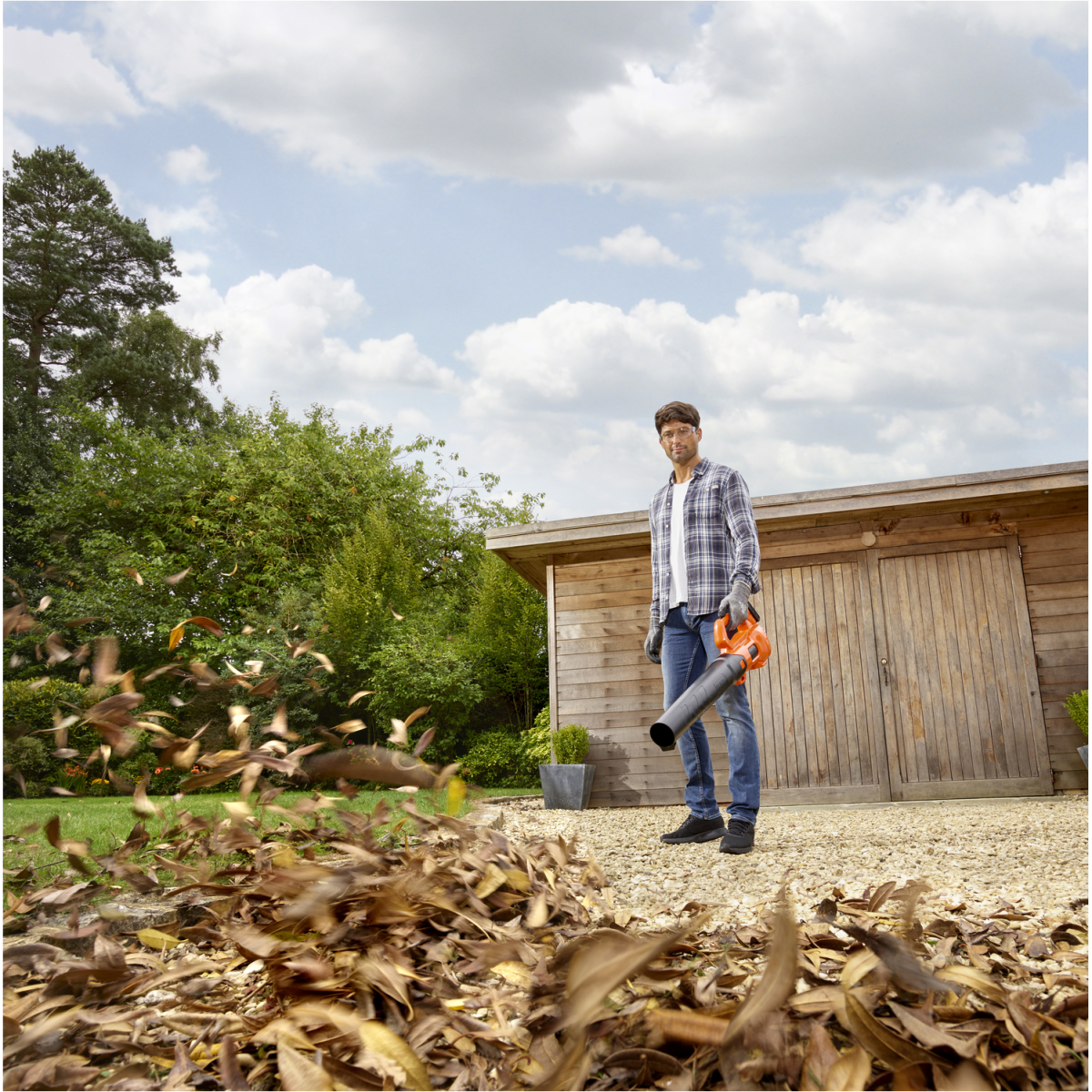 Black & Decker BCBL200B-XJ 18V lombfúvó akku és töltő nélkül, 18V Li-Ion, fújási sebesség 145 km/h, fúvási mennyiség 577 m3/h.