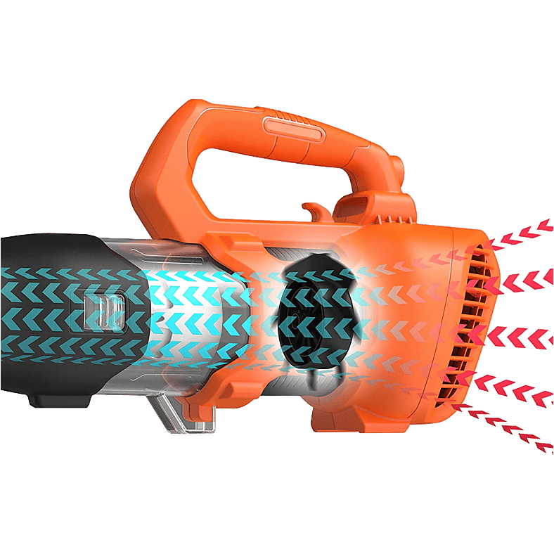 Axiális ventilátor. Nagy mennyiségű levél mozgatása kevesebb idő alatt (12,7 m3 / perc). Könnyű és kompakt kialakítás. Ideális a kert, a terasz vagy a garázs tisztításához. Fúvási sebesség 190 km/h széles sávban, így egyszerre több falevelet tud fújni megfelelő távolságra.