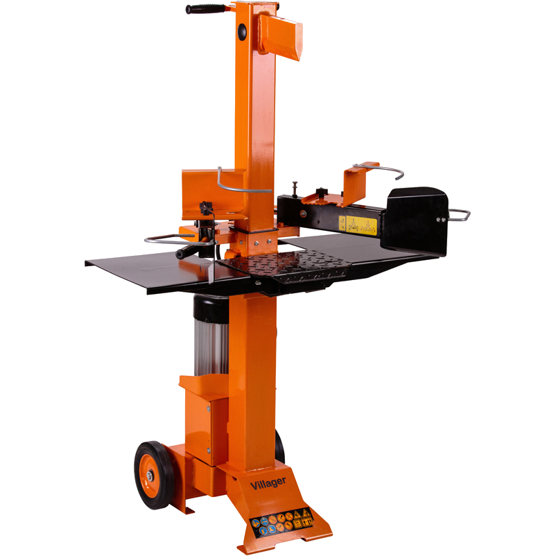 Villager LS 7 T függőleges rönkhasító, 7 tonna hasítóerő, hasító kapacitása max. 55 cm, rönk max. átmérője 30 cm, penge sebessége előre 3,6 cm/s, hátra 16,5 cm/s, olajnyomás 25.2 Mpa.