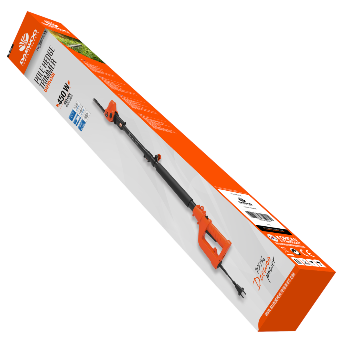 A 235 cm hosszúságú, kihúzható teleszkópos nyél segítségével akár 4 méteres hatótávolság is elérhető, így a magasabb sövények is biztonságosan, létra használata nélkül vághatók. A dönthető motorfejnek köszönhetően könnyen megtalálható az optimális vágási szög, a 450 mm-es vágáshossz és a 22 mm-es vágásvastagság pedig hatékony munkavégzést tesz lehetővé.