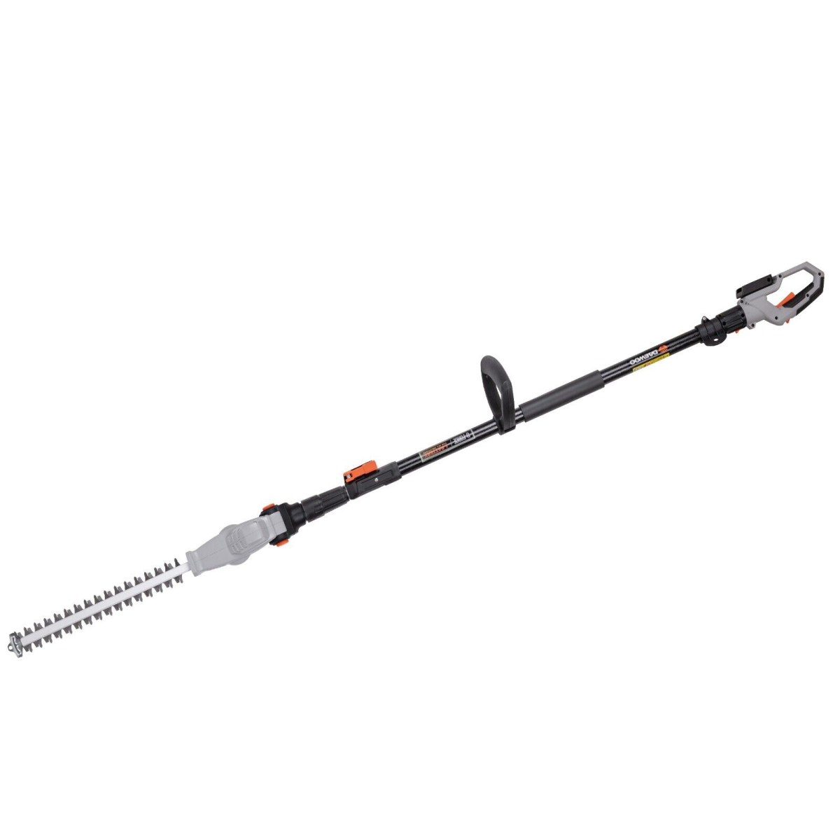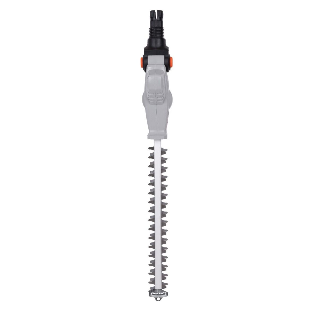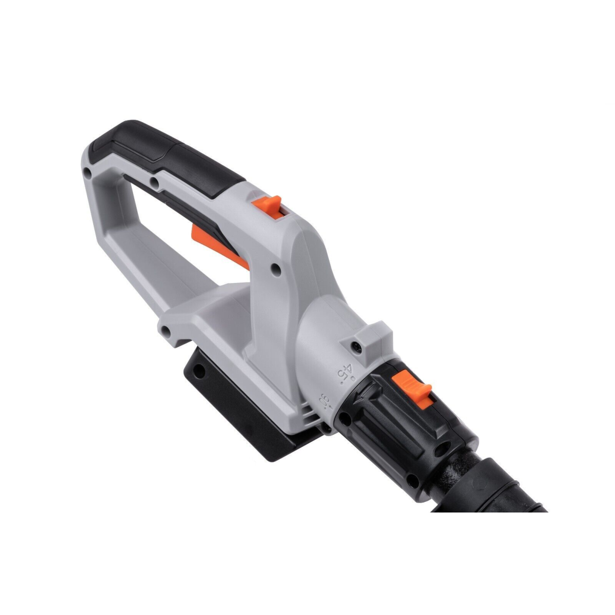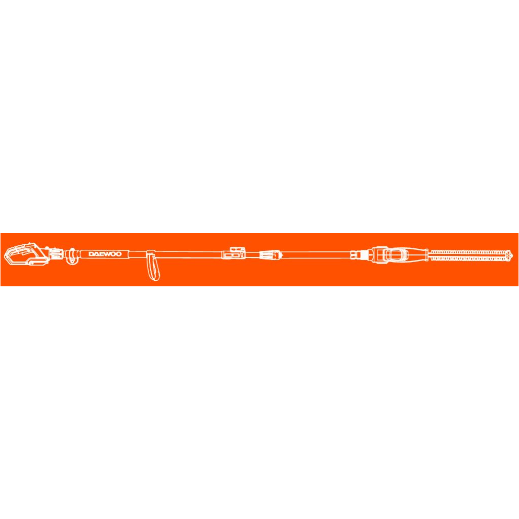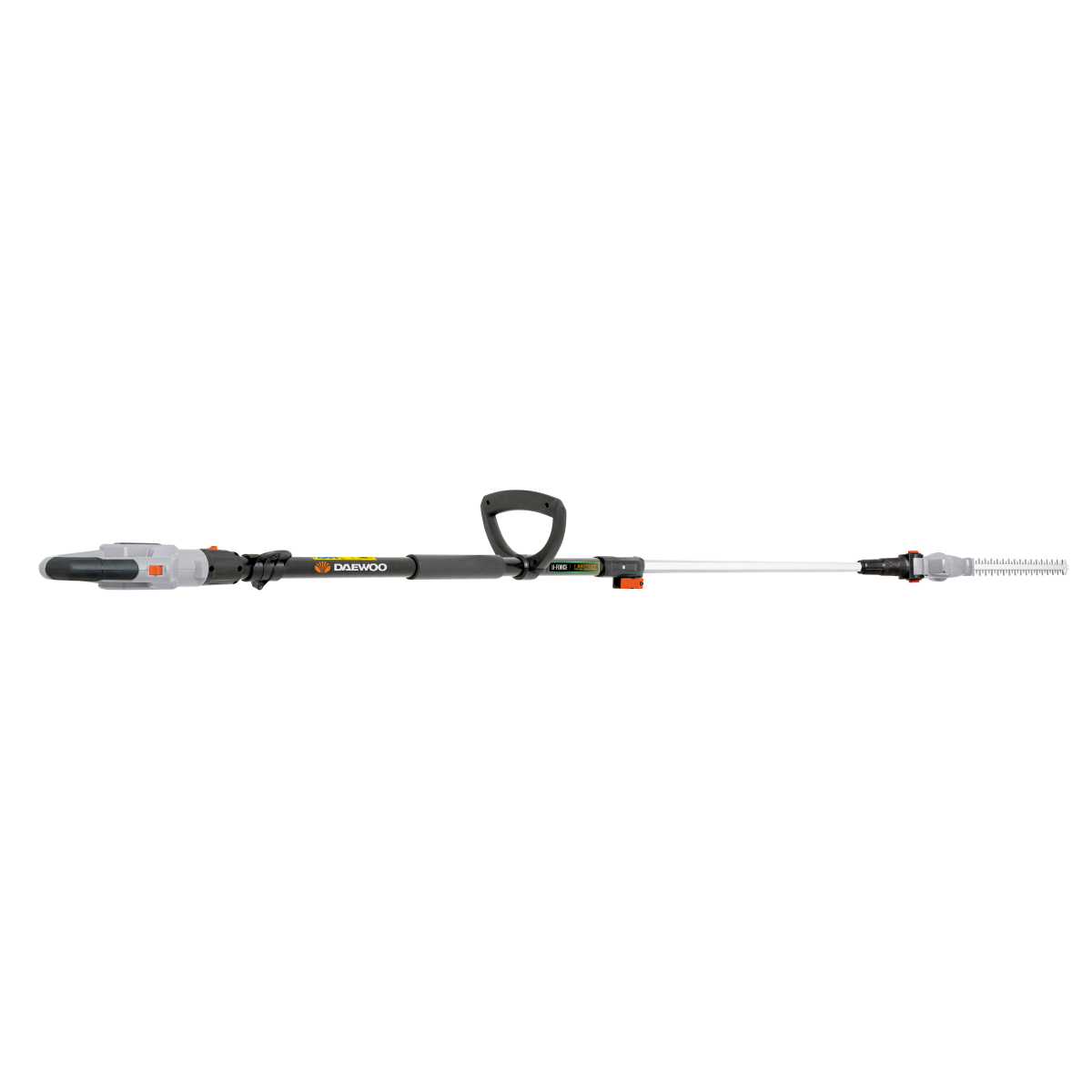 Daewoo DALPHT18-1 akkumulátoros magassági sövényvágó.Tápfeszültség:18V, vágáshossz:415 mm, vágásszélesség:14 mm, maximális menetidő:35 perc (kb.20°C-os környezeti hőmérséklet mellett), teleszkópos fogantyú, állítható magassága:2.17-2.92 m, pengehossz:480 mm, fogköz:16 mm, súly:3,7 kg (akkumulátor nélkül), tartozékok: fogantyú, vállpánt és tok. Akkumulátort és töltőt nem tartalmaz.