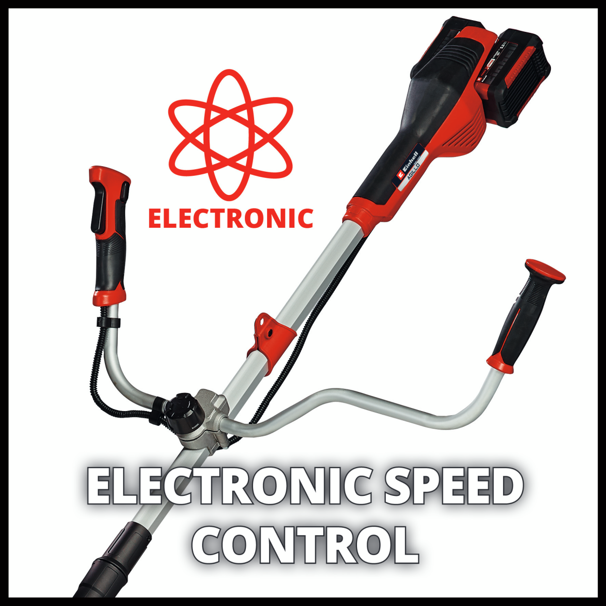 A fűkasza Einhell Brushless Motor technológiával készült, szénkefe nélküli elektromos motorral. Az univerzálisan beállítható kétkezes szarv mindig biztos tartást, és ezáltal biztonságos munkavégzést szavatol. A fordulatszám elektronikusan szabályozható. A kiváló minőségű és erős háromélű tárcsával dolgozva a vágáskép mindig szép lesz, az tengelyzár pedig lehetővé teszi, hogy a vágószerszámot gyorsan és egyszerűen kicserélhesse. Mivel a nyél szétszerelhető, ezért a fűkasza egyszerűen szállítható és helytakarékosan tárolható. A kényelmes munkavégzésről és a biztos fogásról, a kényelmes heveder, az alumínium nyél és a Softgrip borítású markolatok gondoskodnak.