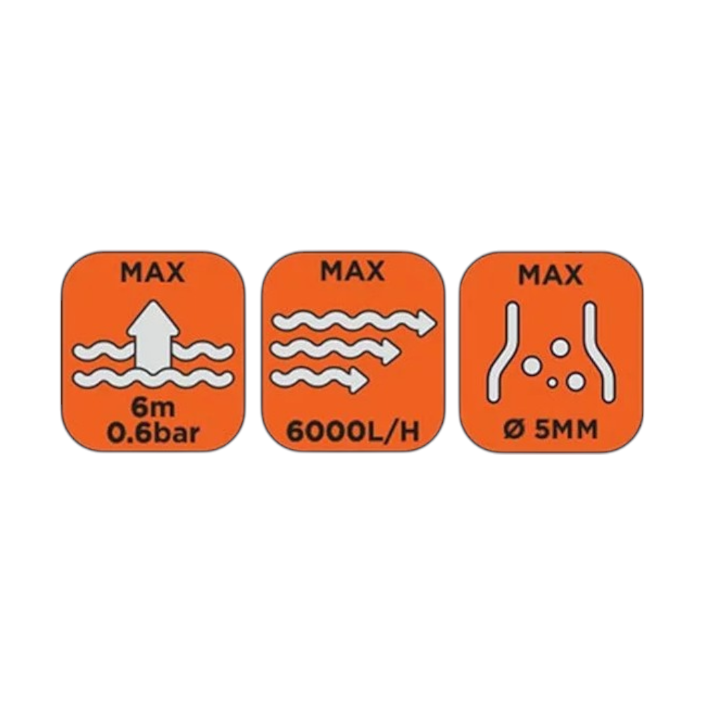 Max. vízszállítás: 6000 l/h.