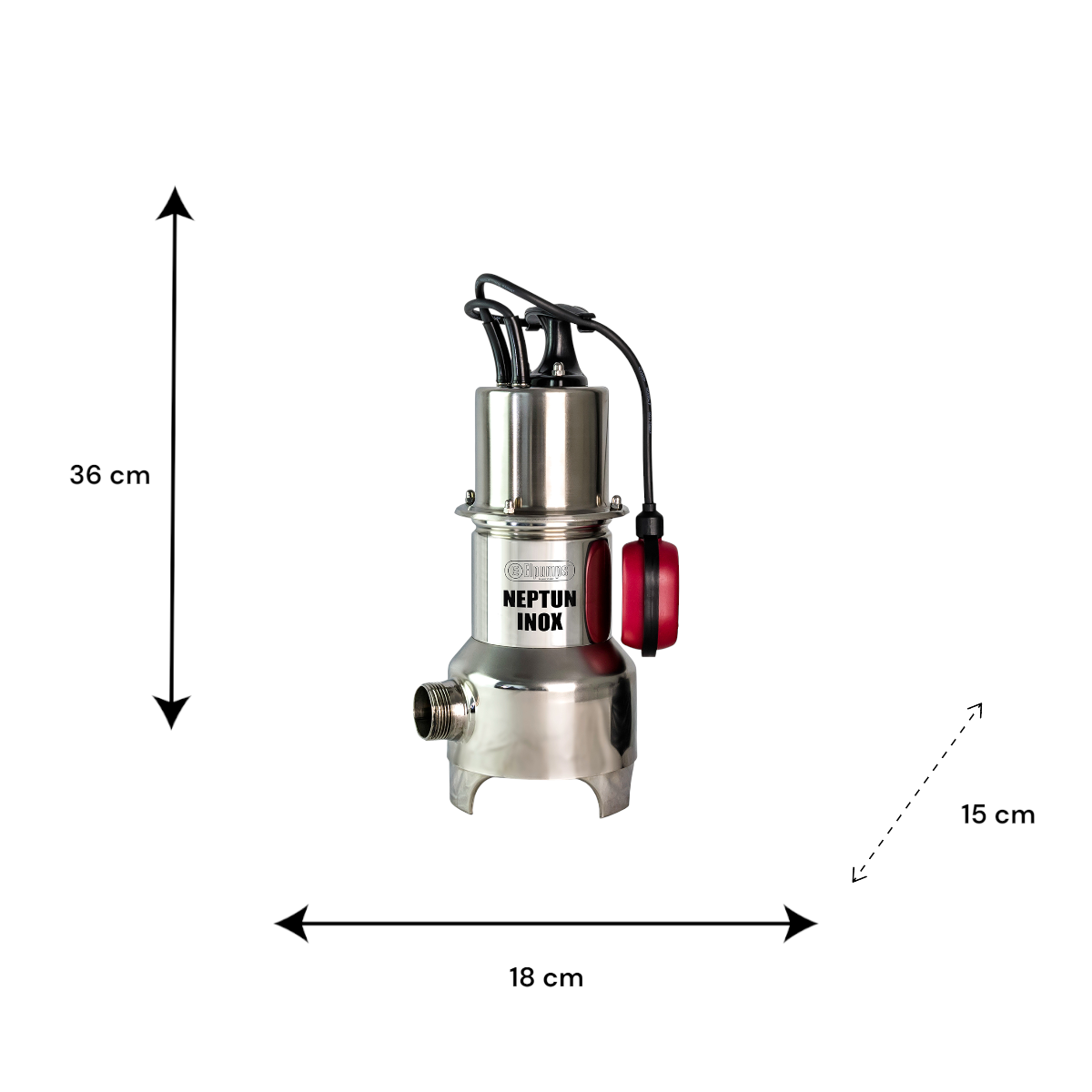 Neptun Inox szennyvíz szivattyú, inox kivitelben, mely családi házak szennyvíz kiszivattyúzására használható. Vas öntvény szivattyú ház és lapátkerék. Csatlakozás: 1 1/4".