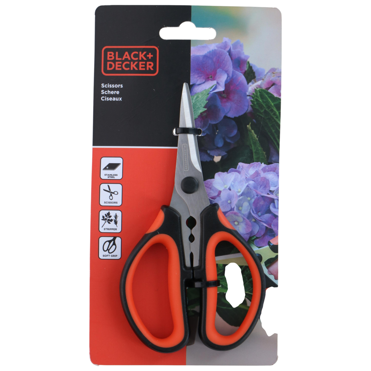 Ez a 15 cm-es Black+Decker kerti olló praktikus méretének és könnyű kialakításának köszönhetően ideális társ a mindennapi metszési és vágási feladatokhoz. Rozsdamentes acél pengéi tartósak, élesek, és precíz vágást biztosítanak, az ergonomikus, puha fogású markolat pedig kényelmes használatot nyújt akár hosszabb munkavégzés közben is.