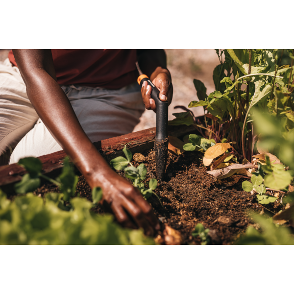Bemetszéseket és lyukakat készít a magok elvetéséhez szükséges mélységben. Az eszköz hegyén található mérőskála 150 mm-es mélységig használható. Az egyedi L-alakú markolat maximális nyomatékot és kényelmet biztosít. A könnyű, mégis hihetetlenül erős FiberComp™ eszköz, az időjárási körülményeknek ellenáll és könnyen tisztítható.