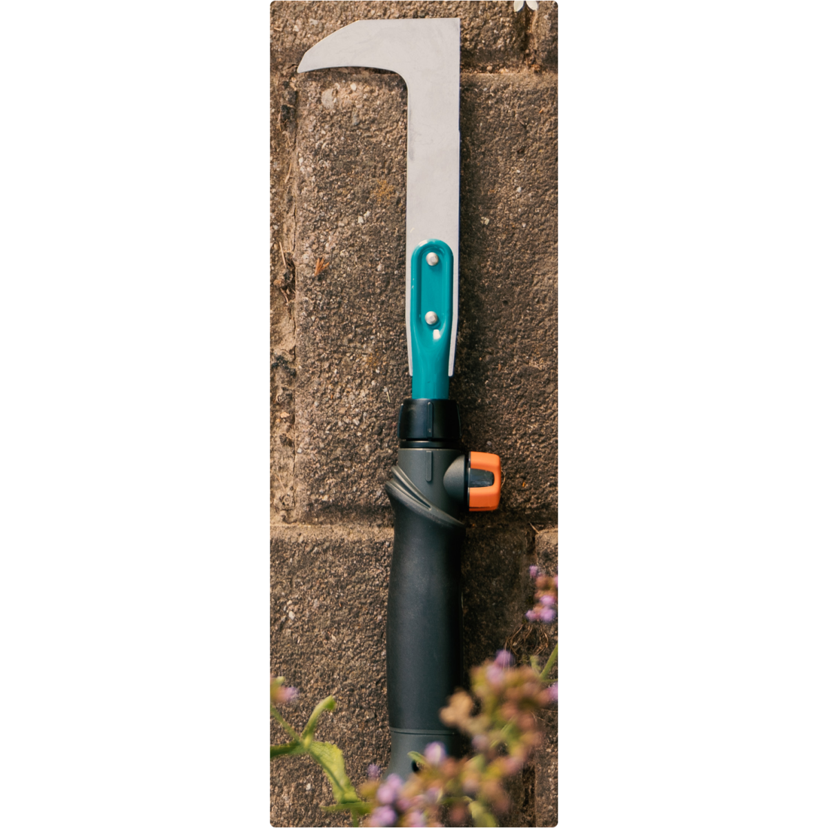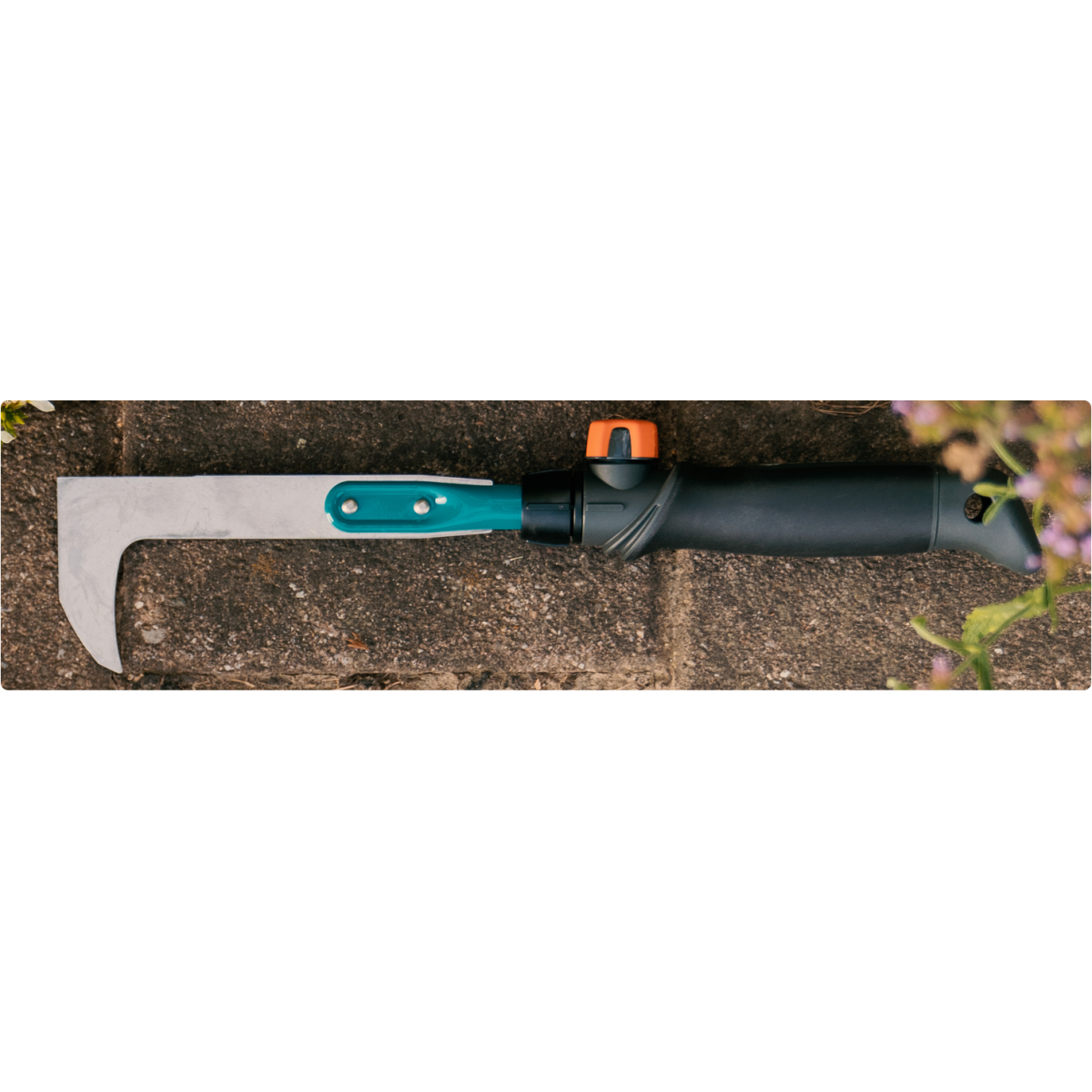 Fű, moha és gaz falszegélyekről, kőlapok fugáiból történő könnyű eltávolításhoz. Kétoldalasan élezett, edzett, rozsdamentes nemesacél kés. A markolat tetszőleges combisystem nyéllel helyettesíthető, így kényelmesen használható. A fugakaparó élvédővel van ellátva.