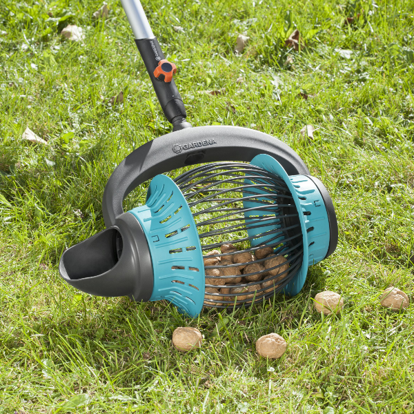 A fáról lehullott gyümölcsök felszedés hajlongás nélkül könnyen lehetséges a gardena combisystem gyümölcsfelszedő segítségével. Köszönhetően a rugalmas műanyag merevítőknek 4-től 9 cm-ig a gyümölcsök felszedhetők. Nem számít, hogy ön diót, vagy almát szeretne felszedni, egyszerűen tolja végig rajtuk a gyümölcsfelszedőt, s a gyümölcsök máris ott lesznek összegyűjtve.