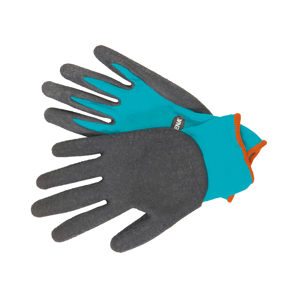 A GARDENA ültetéshez való kerti kesztyűi speciális védelmet nyújtanak, amikor szükség van a jó érzékelésre és nedvesség elleni védelemre. A tenyér- és az ujjbegy részek csúszásmentes és víztaszító latex bevonata tökéletest fogást biztosít munka közben. Mindezek mellet a latex anyagnak köszönhetően a keze tiszta és száraz marad. Még akkor is, amikor nedves földbe ültet. Az ujjbegy részek megerősítései védenek a szennyeződés- és nedvesség ellen, de a tapintás érzete megmarad. Az elasztikus szövésű anyagnak köszönhetően a kesztyű tökéletesen illeszkedik, kényelmes a viselete és jól lélegzik. Ez egyet jelent azzal, hogy nem izzad többé a kesztyűben a keze.