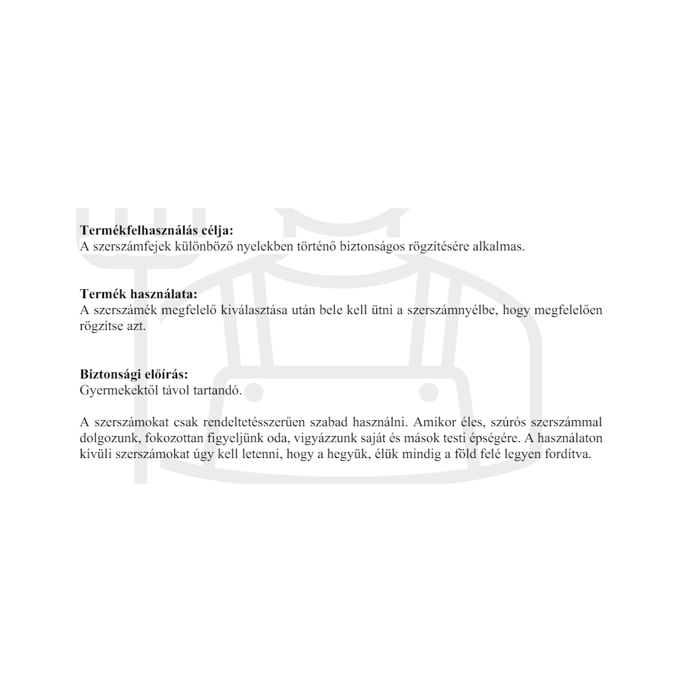 Fém szerszám ék. A szerszámfejek különböző nyelekben történő biztonságos rögzítésére alkalmas. A szerszámék megfelelő kiválasztása után bele kell ütni a szerszámnyélbe, hogy megfelelően rögzítse azt.