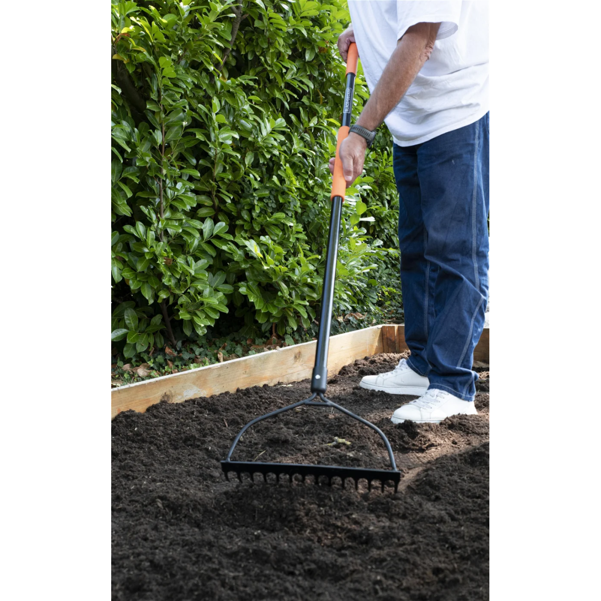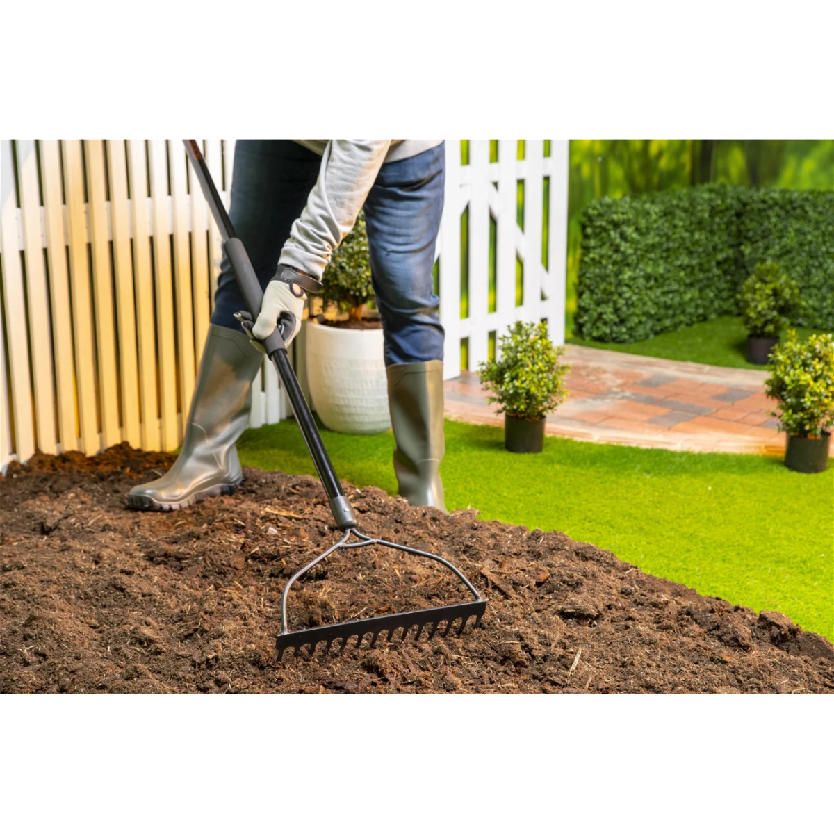A Black & Decker 20 fogú gereblye a levágott fű, széna összegyűjtésére, talaj egyengetésére remek választás. Szénacél szerszámfeje porszórt bevonattal van ellátva, így igazán strapabíró. Az üvegszálas nyele szivacsos markolattal ellátott így nem csak könnyű, de kényelmes fogást is biztosít.