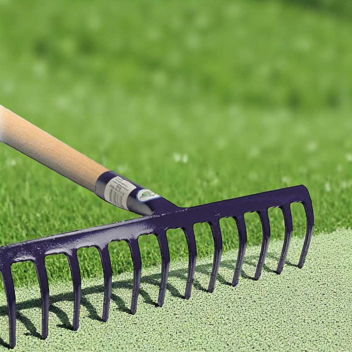 Gereblye, 12-fogú, nyelezett, mely 31cm széles gereblye fejből és 138cm hosszú gereblye nyélből áll. Mezőgazdasági kézi eszköz, amely széna, szalma összehúzására, a fölásott föld egyengetésére alkalmas.