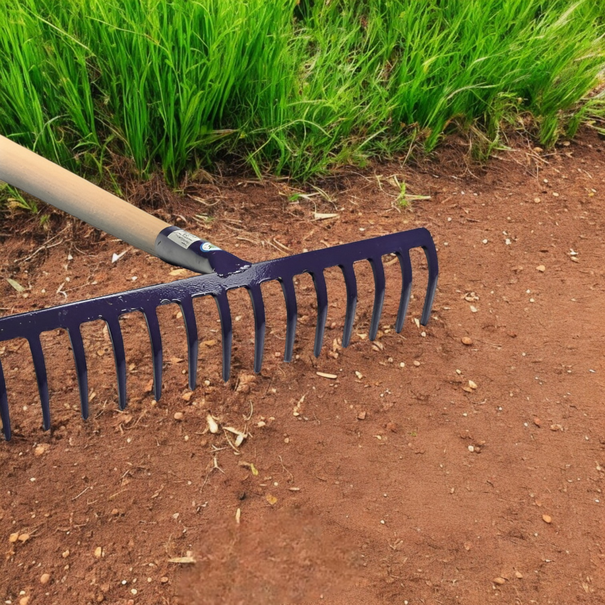 Ez a 16 fogú nyelezett gereblye ideális eszköz kertrendezéshez és talajmunkákhoz.