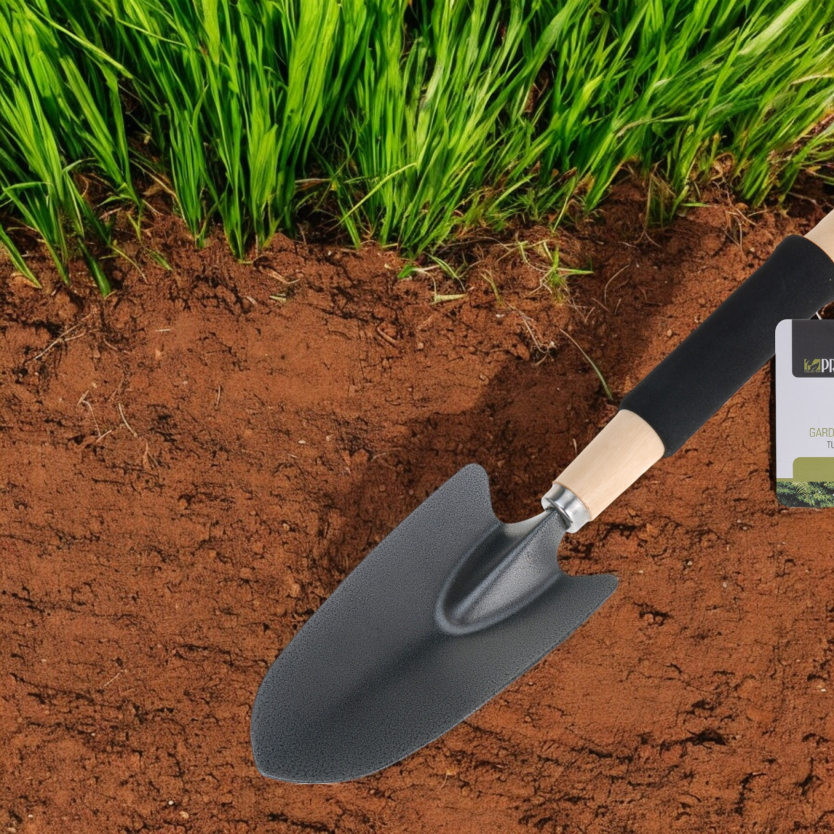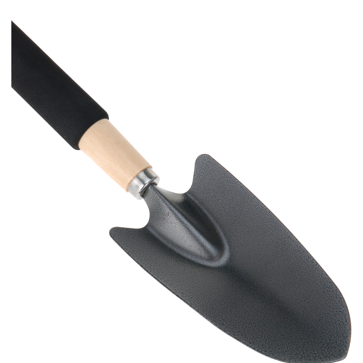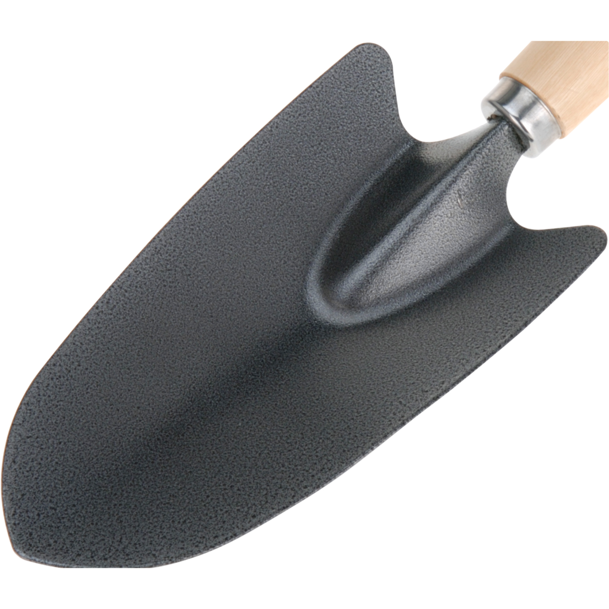 Efa fogóval, csúszásgátlós, fém lapáttal és fa nyéllel, ideális eszköz az ágyásokban, virágládákban és virágcserepekben végzett ültetési és átültetési munkákhoz.