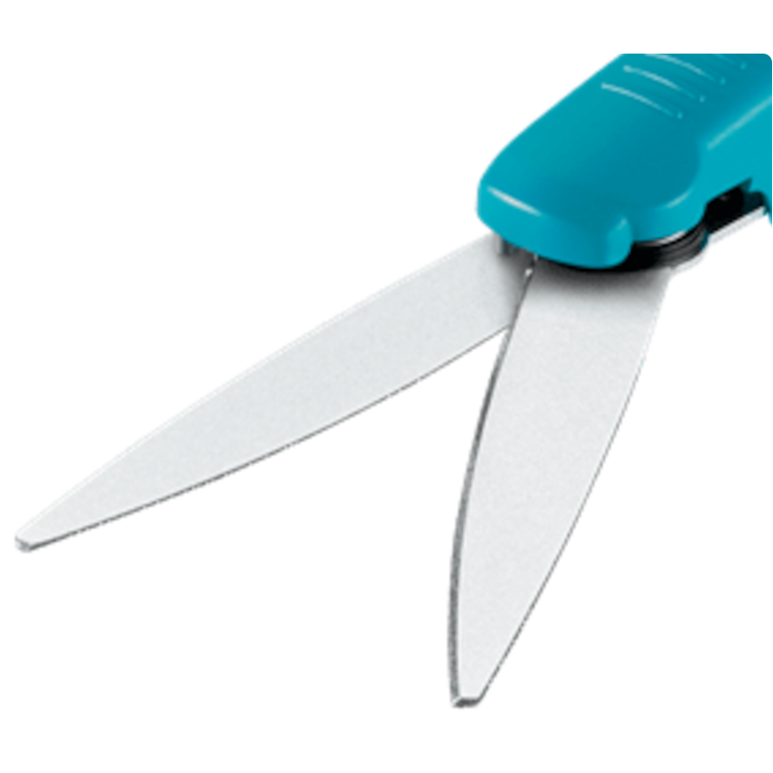 A pontos fűnyíráshoz készült GARDENA Classic fűnyíró olló ergonomikus kialakítású nyele egyszerűvé teszi a vágást. Edzett, fényes horganyzott, rozsdavédett késeinek köszönhetően hosszú az élettartama. A speciális késrögzítés jóvoltából a kések teljes hosszukban hatékonyan vágnak. Az olló a praktikus egykezes zárral gyorsan és egyszerűen lezárható.